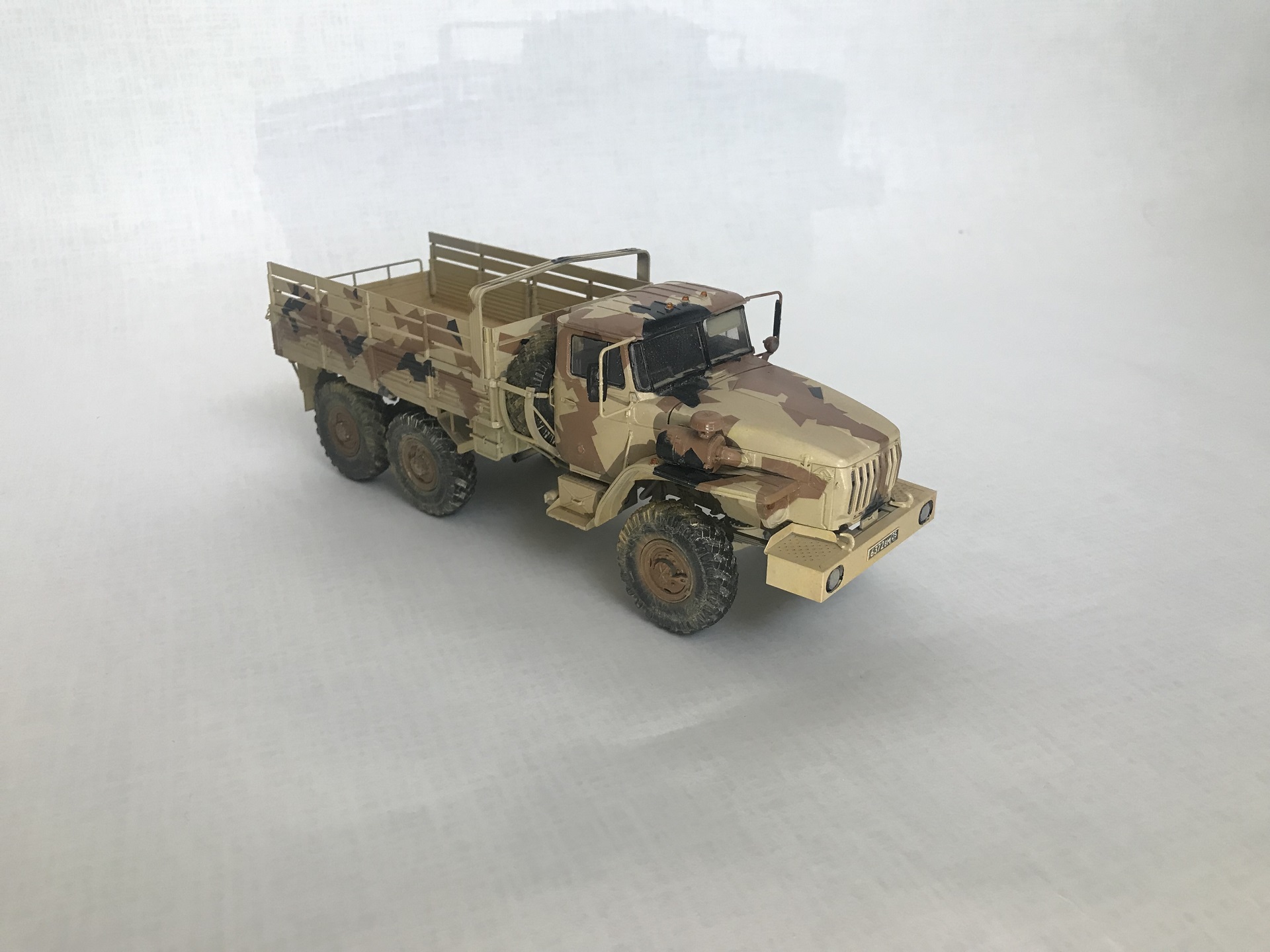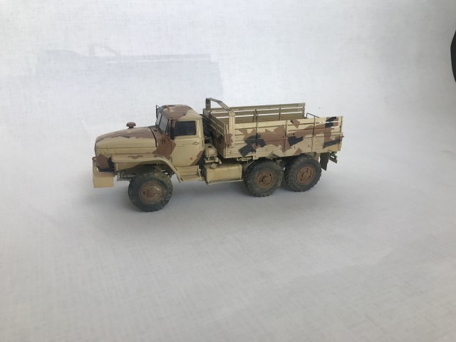 За основу был взят камуфляж Урала, представленный на выставке Army-2016... Не знаю получилось или нет, но вроде годная моделька вышла..Модель дополнял фототравлением от Микродизайн, так что открываются капот и двери. Краска и смывка от Ammo, масляные краски от Pebeo.