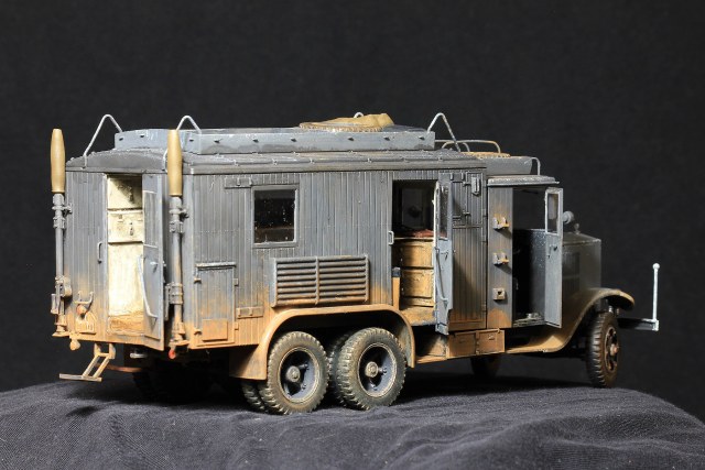 Интересная модель,хорошая работа. Очень не хватает фото внутрянки. По-моему крышу кунга можно сделать съемной или фото в процессе стройки.