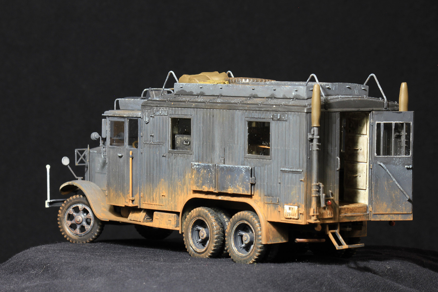 Всем привет. Представляю вашему вниманию свою первую модель, которую решился выставить на данном ресурсе. Для сборки использовался кит ICM 35462 Krupp L3H163 Kfz.72 Radio Communication Truck. Из доработок - собран интерьер "кунга" из листового пластика и неиспользованных деталей других наборов. Окраска производилась кистью. Использованы краски производителя Хамбролл а так же пигменты и смывки других производителей.