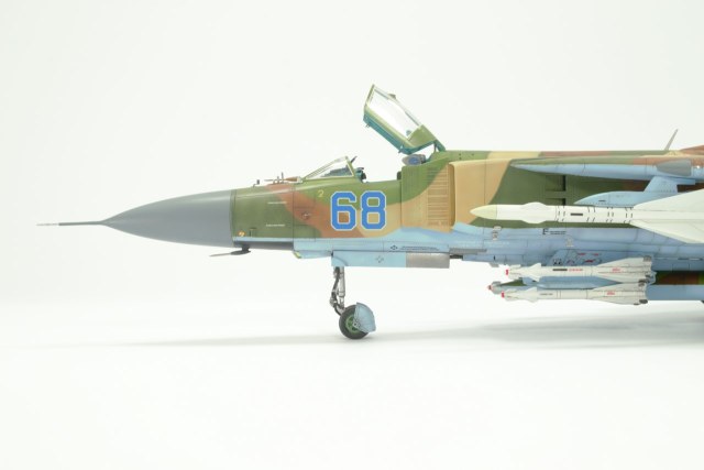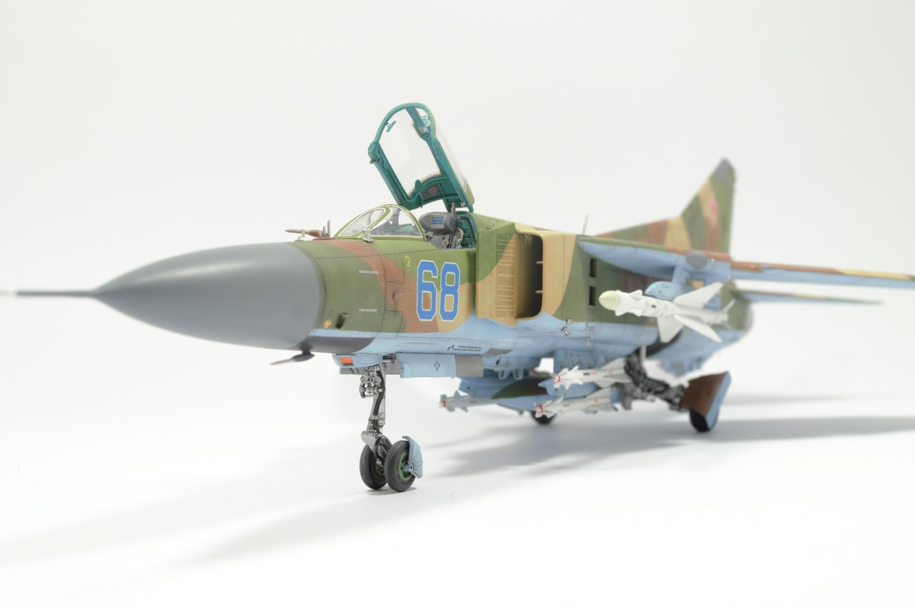 Модель прекрасна, но есть один нюанс. Ракеты с радиолокационной головкой и инфракрасной одновременно никогда не вешались. Только с одинаковыми. В данном случае будем считать, что МиГ выставлен для авиашоу на стоянке