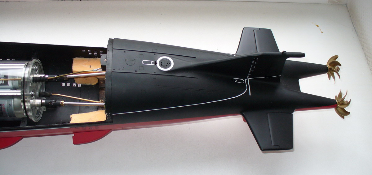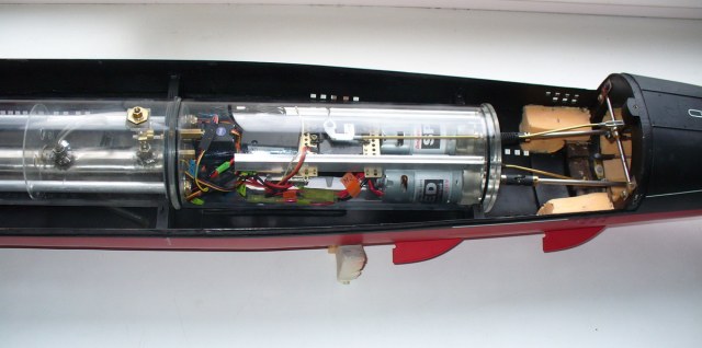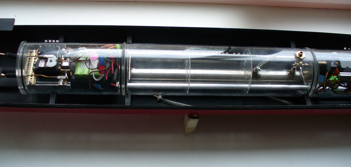 Чтобы лодка могла погружаться и всплывать, дополнительно из акриловой трубы диаметром 100мм изготовлен жесткий корпус, он же водонепроницаемый цилиндр (WTC). Лодка имеет газовую БЦ (балластную цистерну) на 1,5 Л., и емкость с ВВД (воздухом высокого давления).