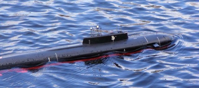 Радио управляемая модель атомной подводной лодки проект 949А «АНТЕЙ» он же OSCARМодель выполнена в масштабе 1/100, радио управляемая.
