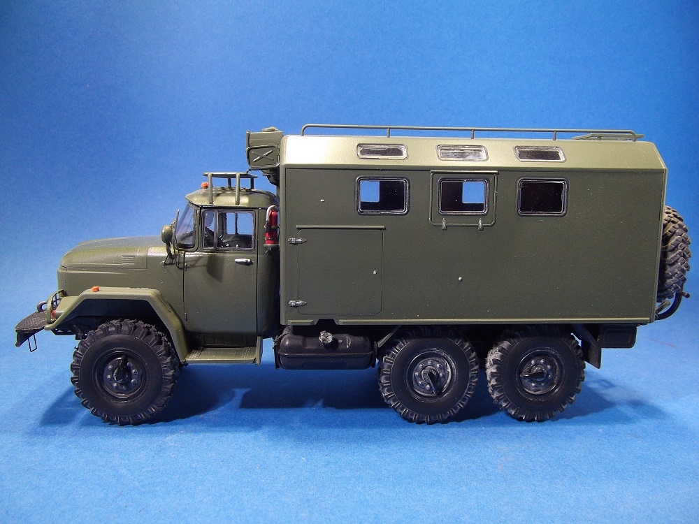 В этот раз представляю ЗИЛ- 131 КШМ, от ICM. Набором остался доволен. Хороший пластик, деталировка очень порадовала. Также полная жесткая резина порадовала качеством. Немного растроило лобовое стекло. Ну никак не хотело садится, такое чувство, что оно на 1 мм длиннее. Пришлось силой на супер клей сажать. И вроде как пассажирская дверь не очень сидит, как то на микрон выпирает.