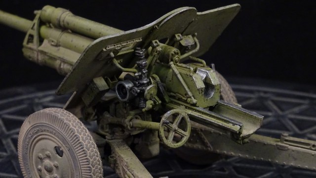 Модель собиралась из набора фирмы Mini Art №35129. В набор входит само орудие, артиллерийский передок, артиллерийский расчет из пяти человек и ящики с боеприпасами включая сами боеприпасы.