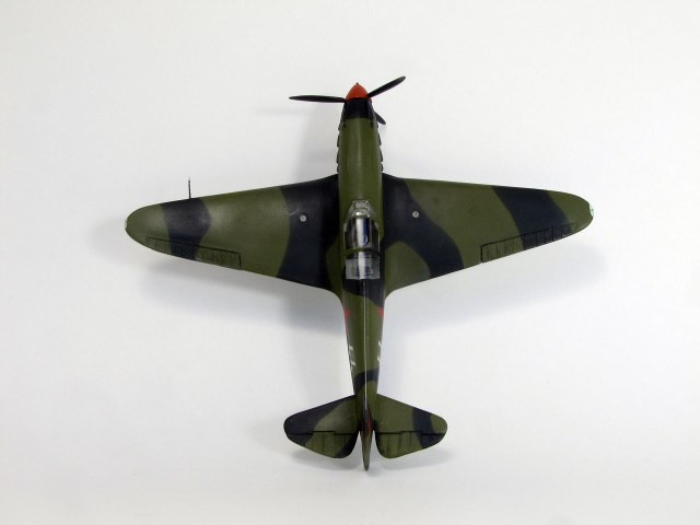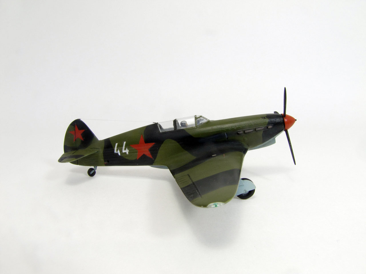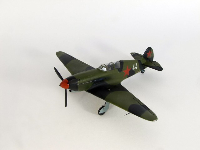 Как изкаробка вполне себе Як. Аккуратно собран, покрашен. Цвета камуфляжа нравятся. Не оставляет чувство, что фюзеляж от кабины до хвоста коротковат. И кок винта вроде тоже короткий. Может ошибаюсь... Странные намеки на воздухозаборники у обоих консолей. Як-то ранний. Раз уж сделали Бано на консолях, надо было и на хвосте сделать. Да, и что это за отверстие на правой стороне фюзеляжа выше стойки хвостового колеса?