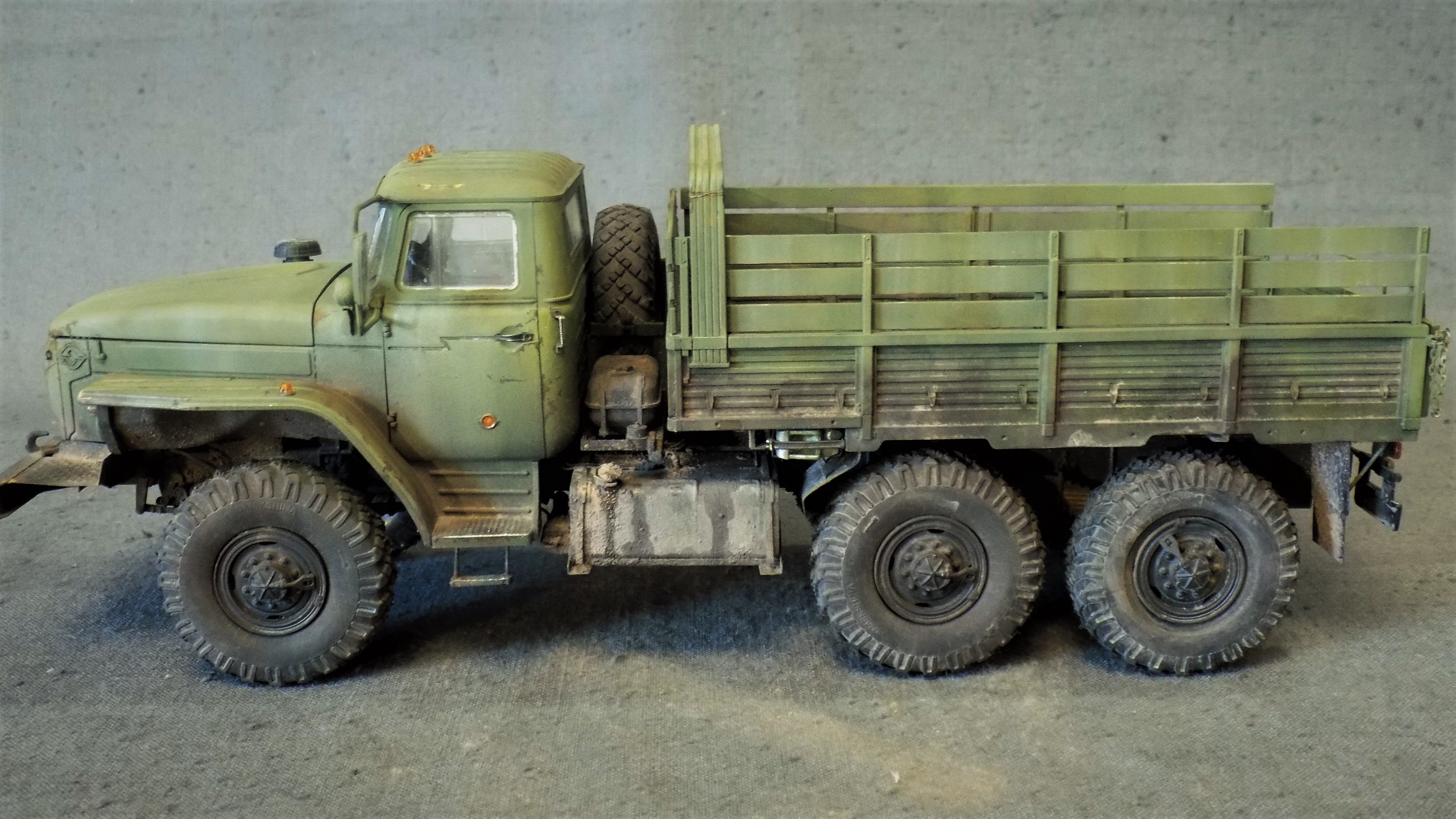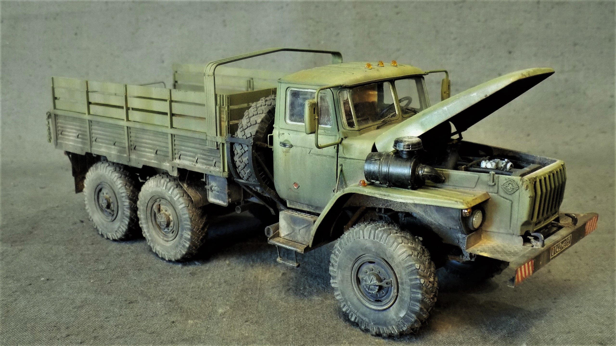 Приветствую, товарищи. Представляю на суд модель Урала от Звезды в 35 масштабе. Модель изкоробочная с применением травла от МД. Делал без особого энтузиазма, а посему неудачно вышло остекление. В основном детализировал ходовку. От набора остался доволен. В общем-то и все по модели.