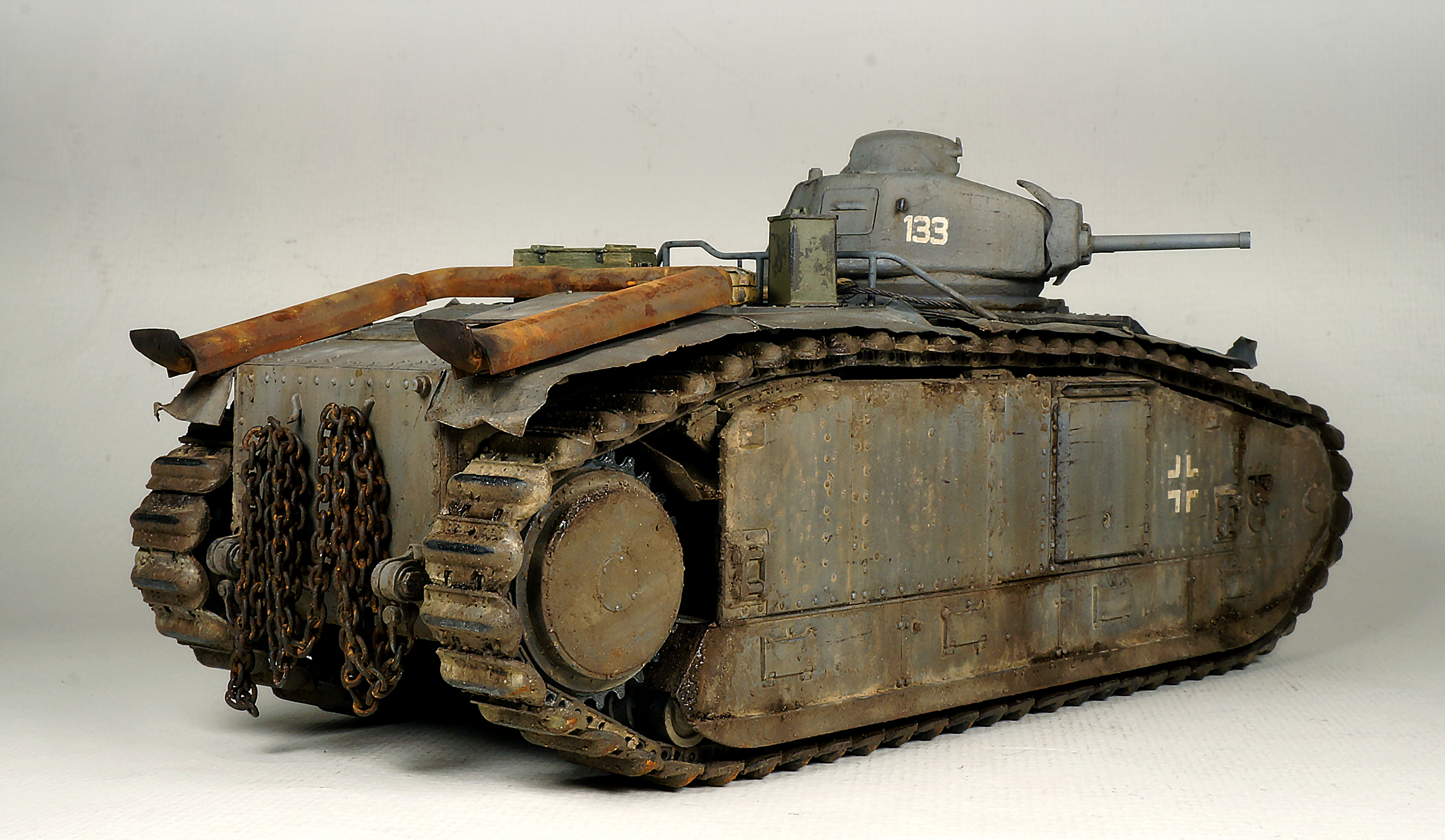 Единственное, что просится на до-weatering - это ствол пушки, торчащий из ВЛД. Чистенький такой на фоне окружающий деталей