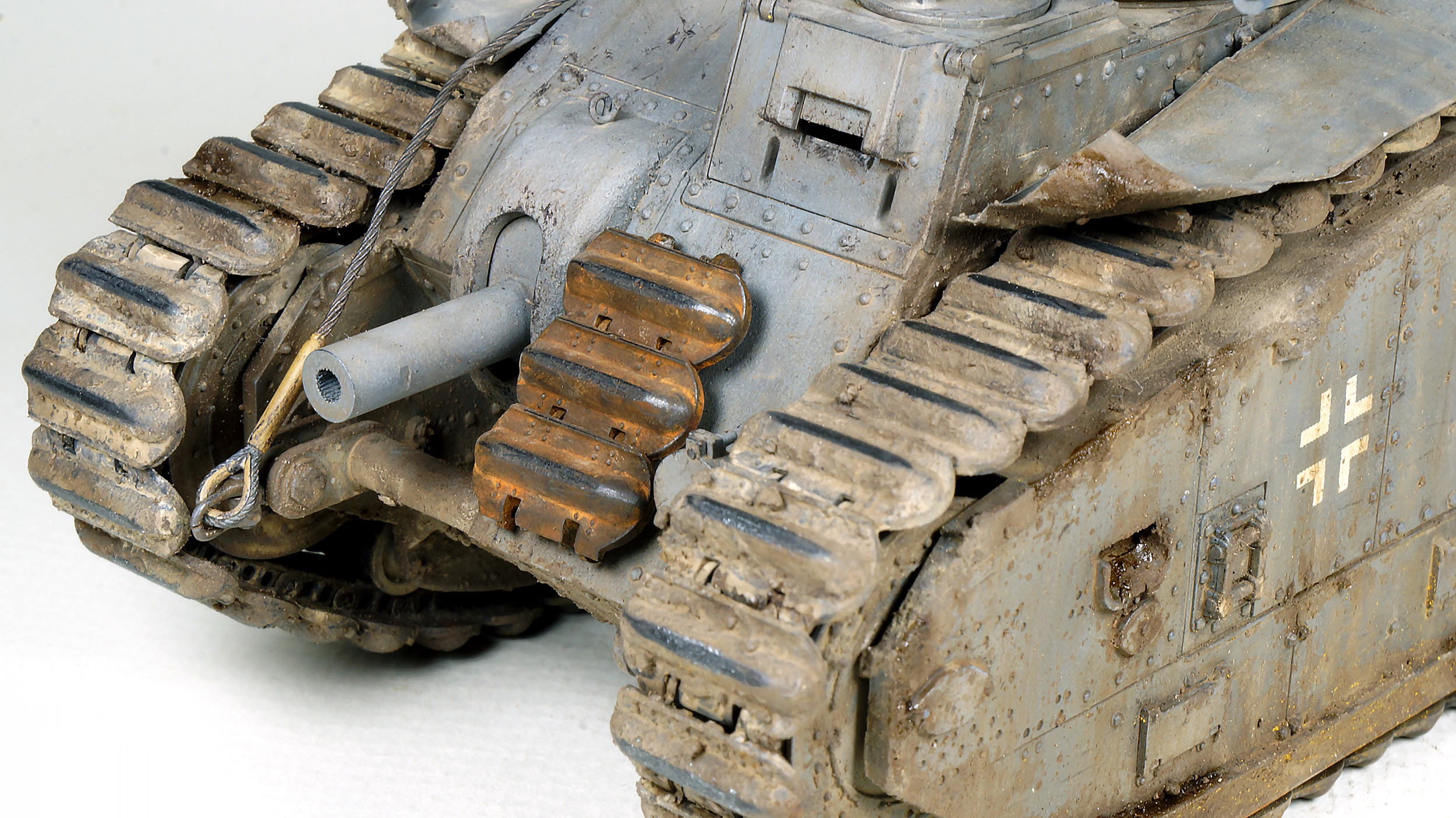 Отличная работа! Ходовая получилась просто шикарно, все абсолютно правдоподобно - и грязь, и масло, и пыль, и траки. Поздравляю, Михаил!