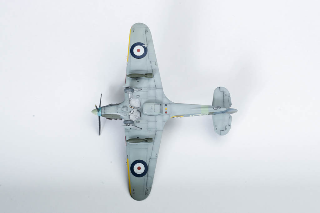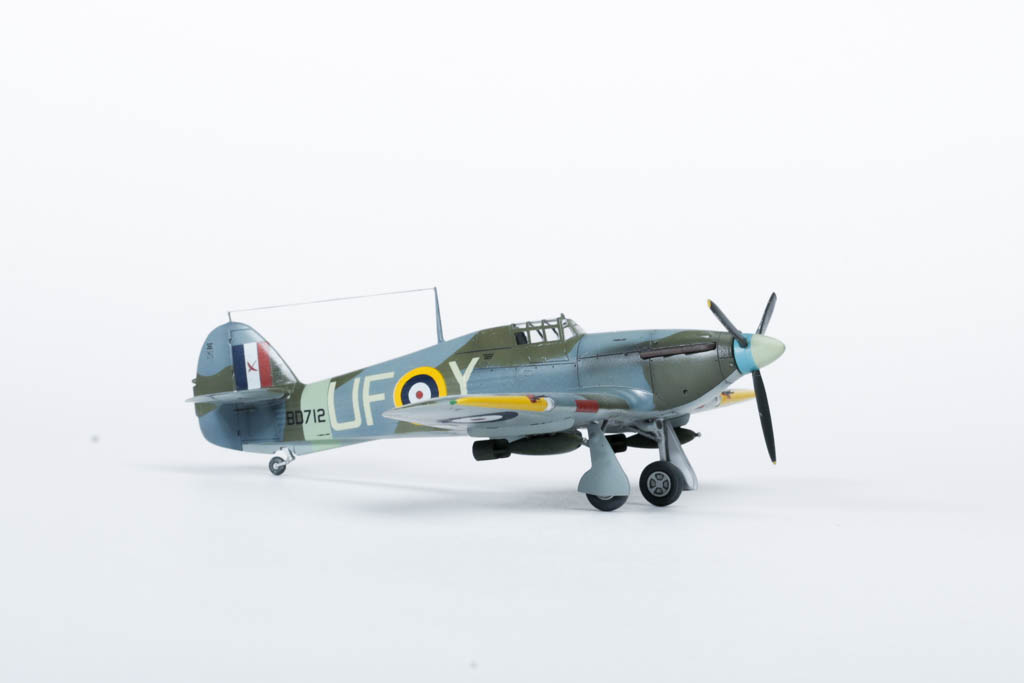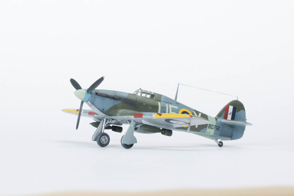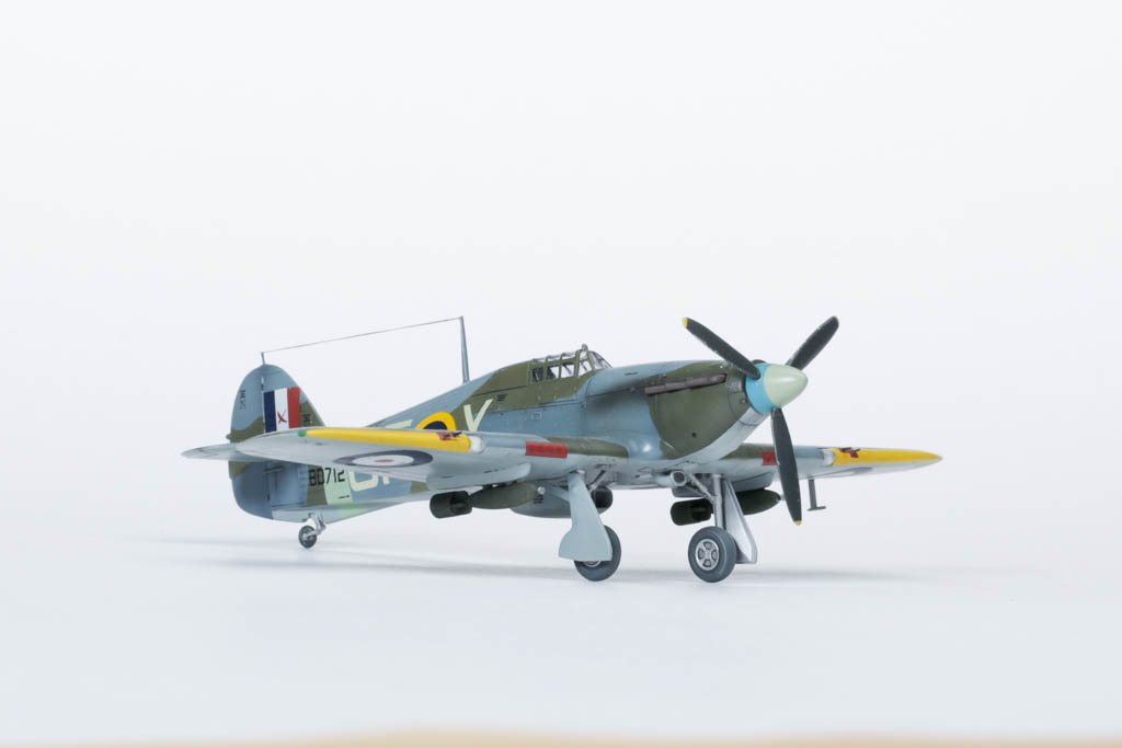 По мере насыщения британских ВВС "Спитфайрами" "Харрикейны" начали оттесняться на второстепенные театры военных действий и на роль самолета непосредственной поддержки. Для эффективных действий по наземным целям потребовался другой ассортимент вооружения, в первую очередь, бомбы. В апреле 1941 г. в Боскомб-Даун испытали "Харрикейн" I, под крыльями которого висели две бомбы по 113 кг. Министерство авиации одобрило эту попытку превратить "Харрикейн" в истребитель-бомбардировщик. Самолет был вооружен 12ю пулеметами