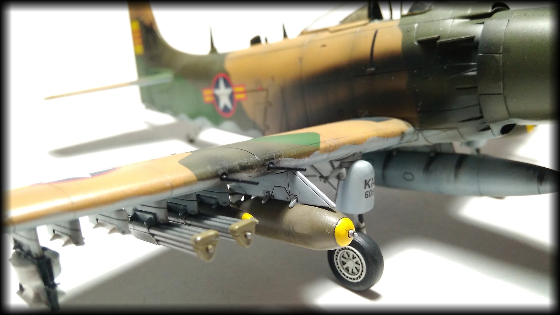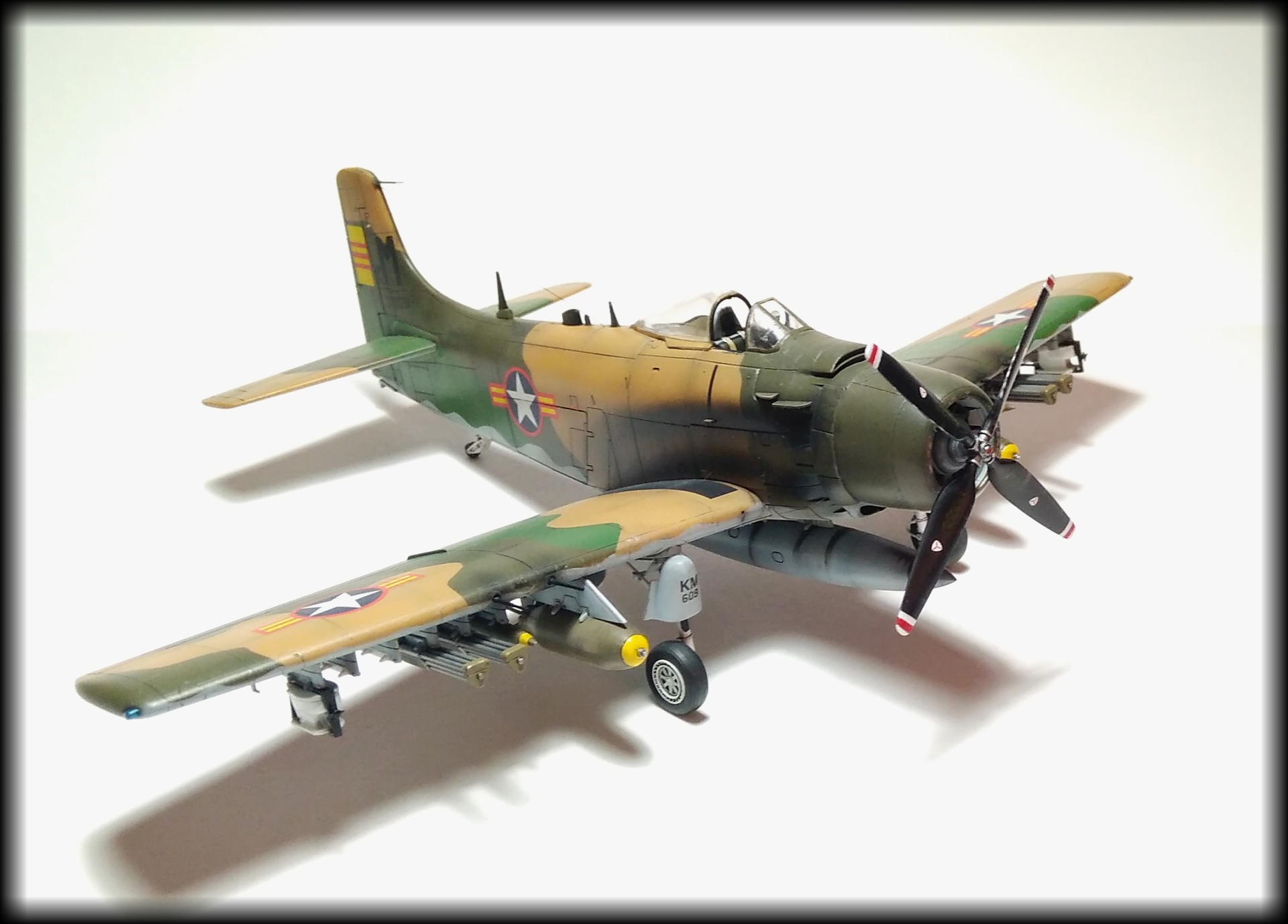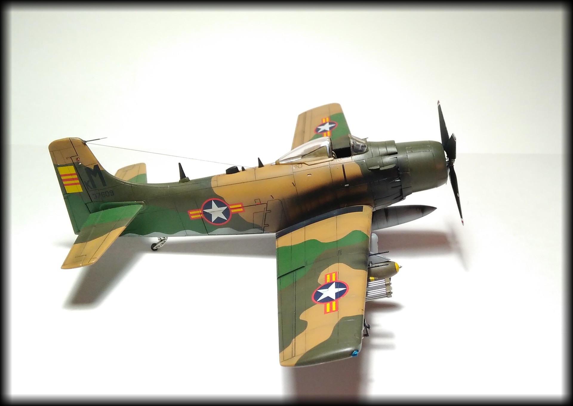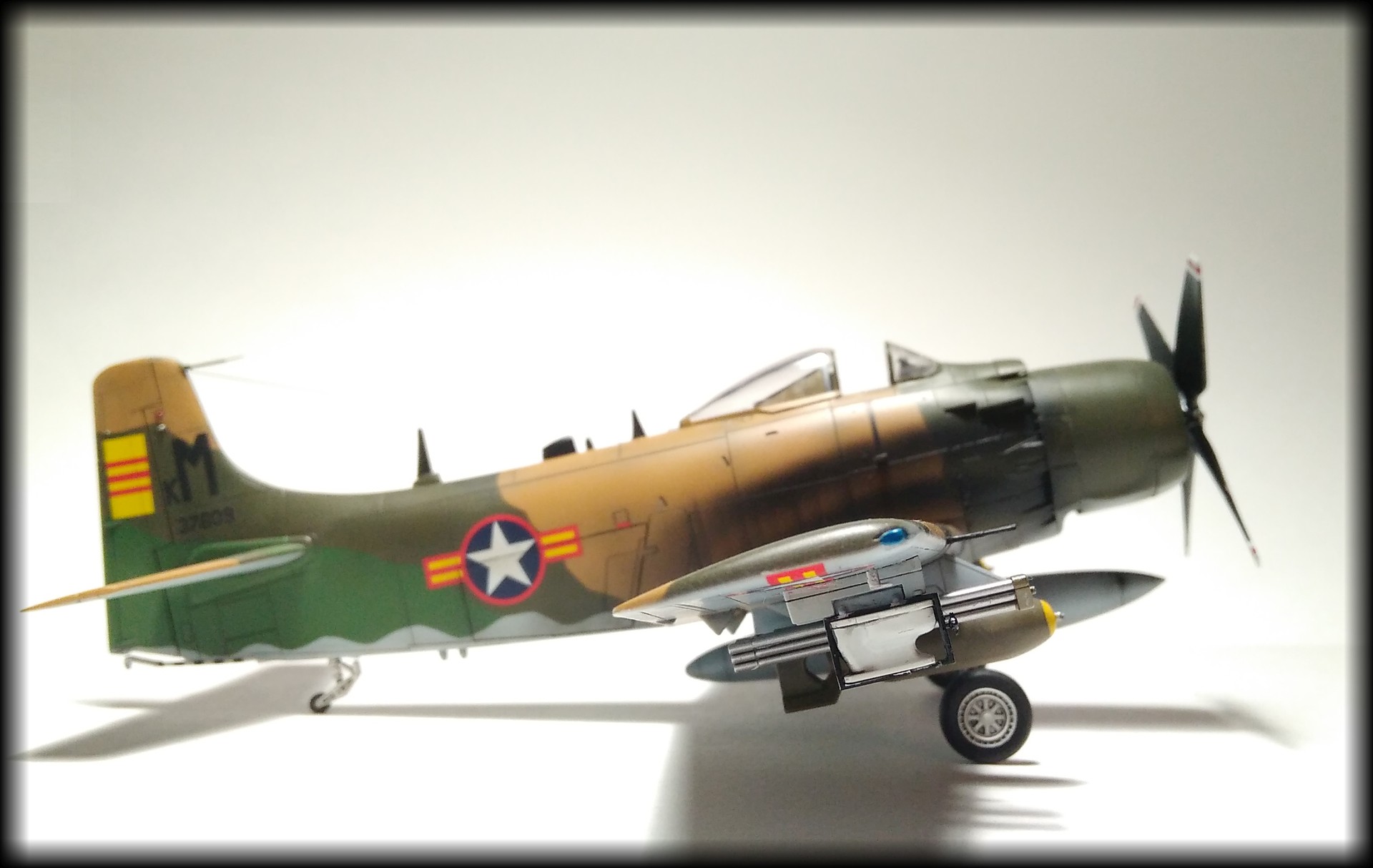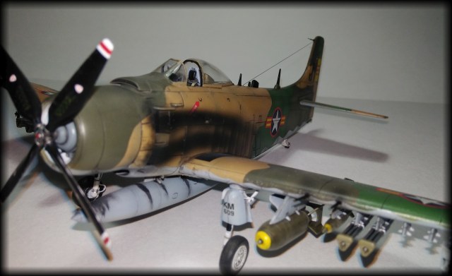 Отличный Скайрейдер! Обожаю этот самолет. Знаки стандартные для ВВС Южного вьетнама, как и сказали. "Унитазные" бомбы - единичное хулиганство. Один исполнил, получил по щам, потом кто-то повторил. Читал где-то полную историю, как эта "операция" готовилась.