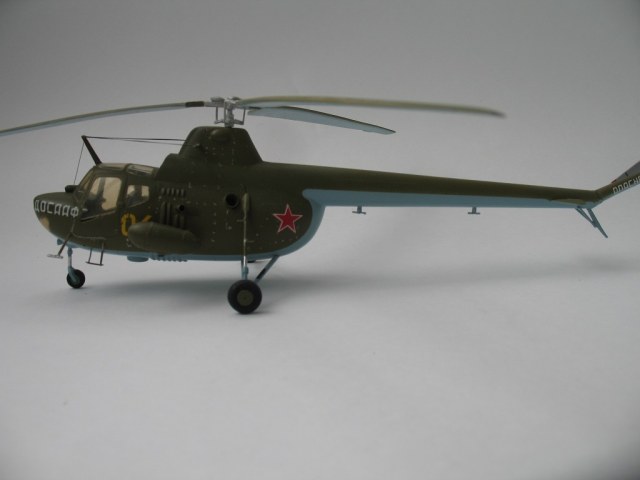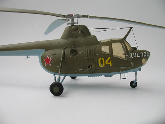 Вертолет Ми-1советского авиаконструктора М. Л. Миля был построен 1947 году. В серийное производство поступил в 1951г.Машина поставлялась в ВВС,ДОСААФ, Гражданскую авиацию.Было развернуто производство в Польше в г.Свидник под названием SM-1(Шмигловьец -1)(Шмигло-винт).Единственная модель этого вертолета в 48-м масштабе выпускает фирма Special Hobbi.ЛНД литьё приличного качества дополненное смоляными деталями кабины ,створками радиаторов и травлением с вакуфрмированным фонарём пилотской кабины. Модель окрашивалась красками АКАН. Стойки шасси-хром Мастер Моделс. Лучевые антенны-витебская нить. Сильно дорабатывать модель не стал. Есть недостатки-а как без них,ничего в этом мире не идеально. Приятного просмотра.