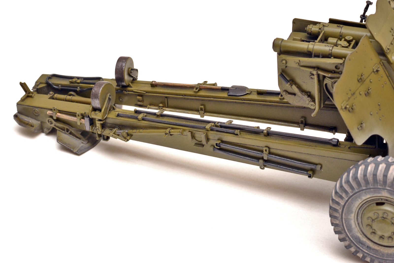 В качестве доработки лишь заменил пластиковые детали "резиновых" трубопроводов тормозной системы орудия на эластомерную нить.