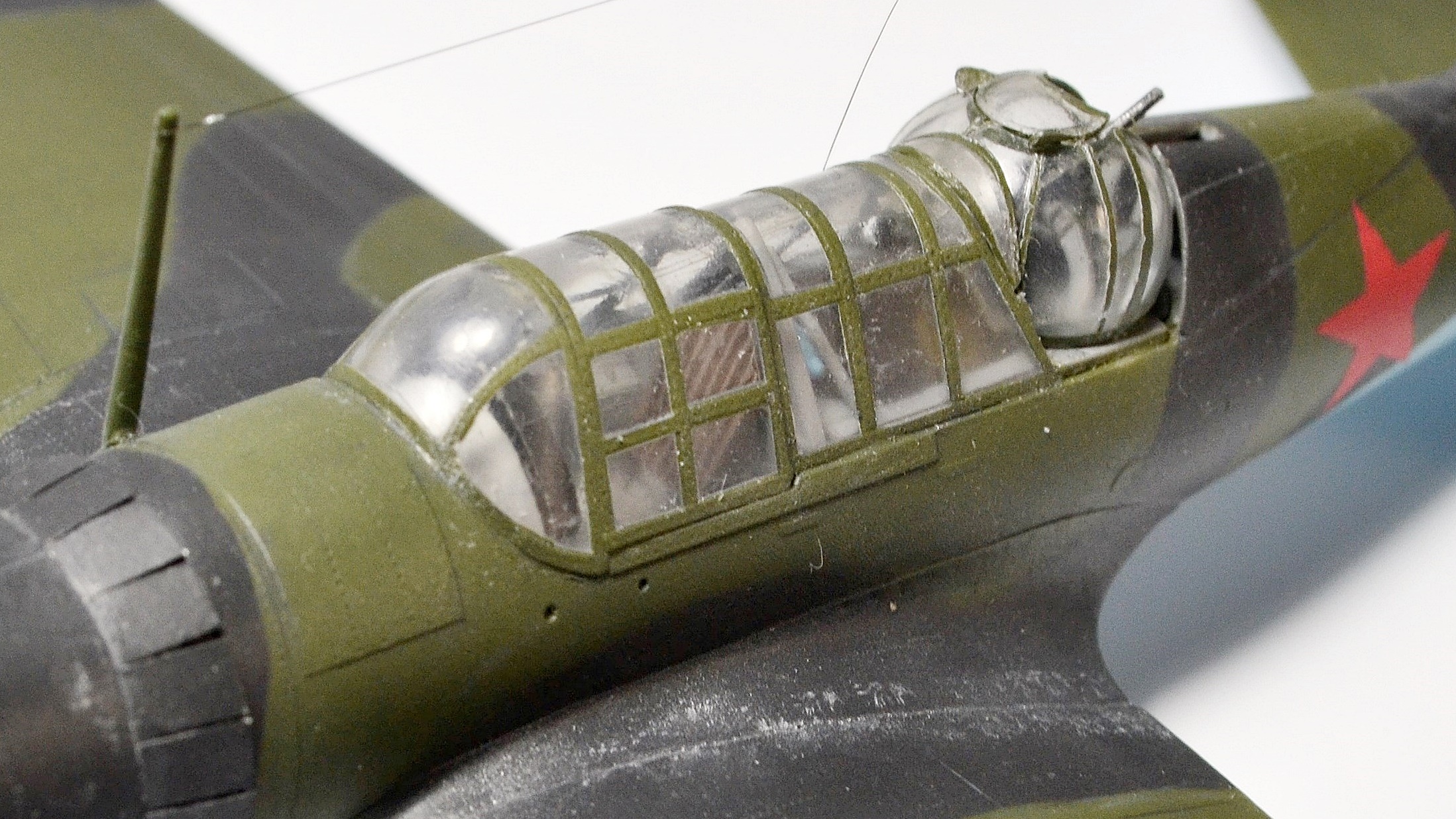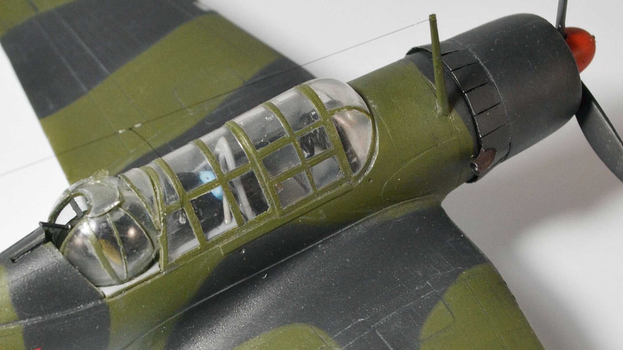 - зашпаклевал отверстия для пулеметов и просверлил новые выше стыка половинок крыла. Сами пулеметы... будем считать, что демонтировали))