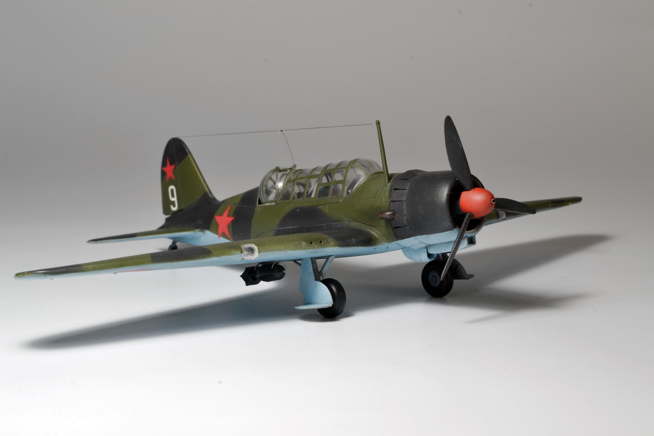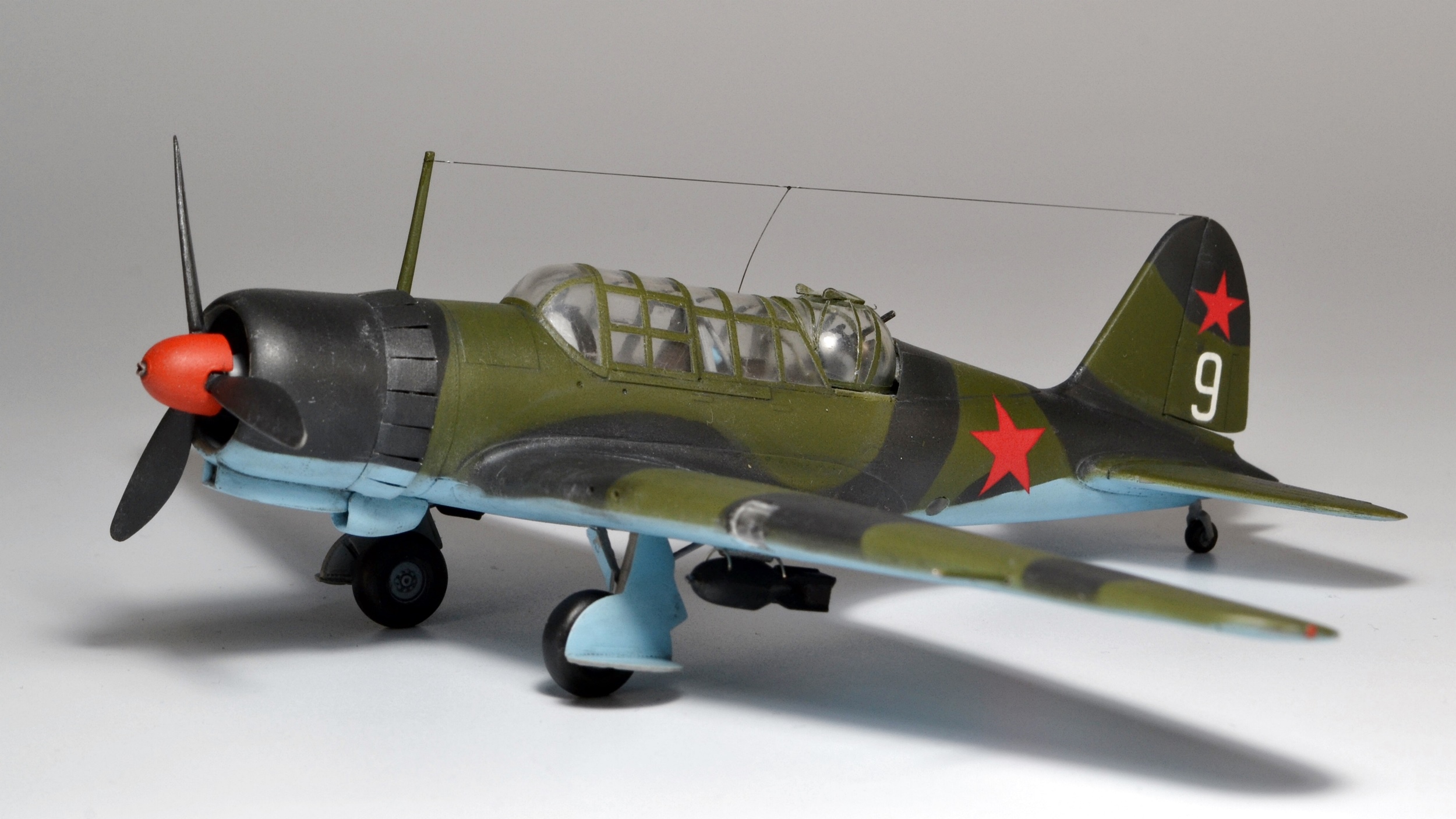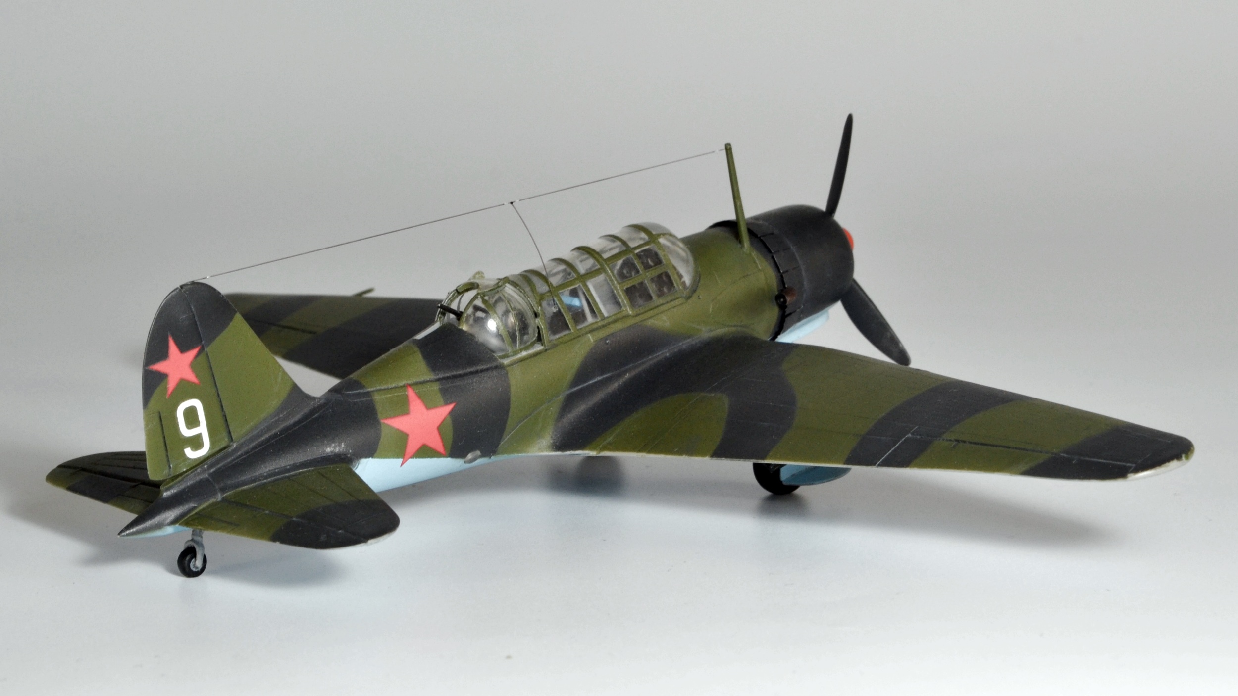 Нормальная "девятка"! Недостатки крыла видно только, если смотреть на модель строго "анфас", бомбы перевернуть вообще минутное дело. В остальном хорошая и смотрительная модель замечательного самолета.