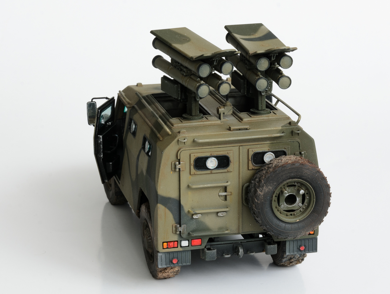 СТС ГАЗ-233014 — специальное транспортное средство — армейский бронированный вариант. Трёхдверный бронекорпус обшит противоосколочным покрытием АОЗ на основе арамидной нити. 4-тактный дизельный двигатель Cummins В-205 с турбонаддувом обеспечивает удельную мощность не менее 27 л. с./т. СТС ГАЗ-233014 был принят на снабжение подразделений ГУ ГШ ВС РФ приказом министра обороны РФ 6 марта 2007 года. В моём случае - носитель ПТРК "Корнет-Д" Подробнее про прототип можно почитать здесь .
