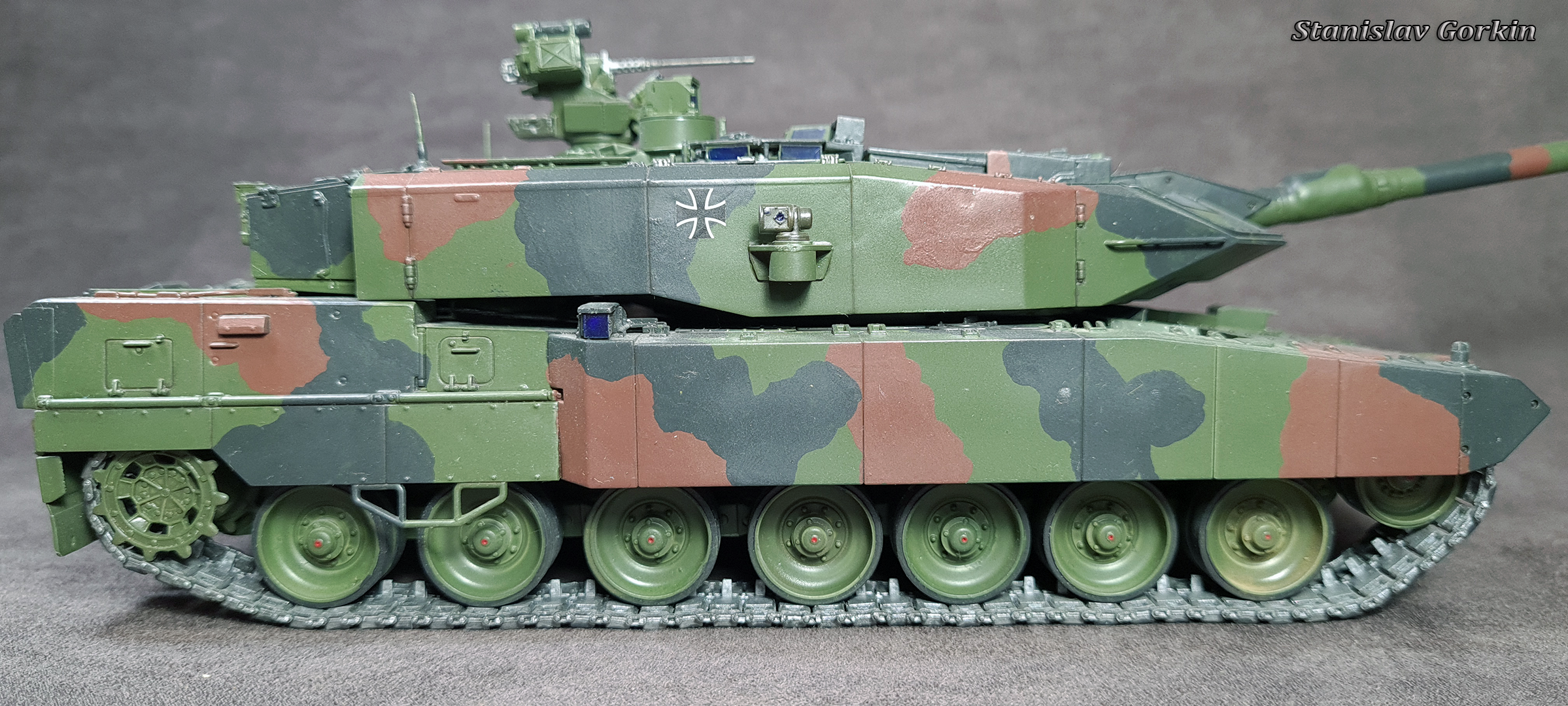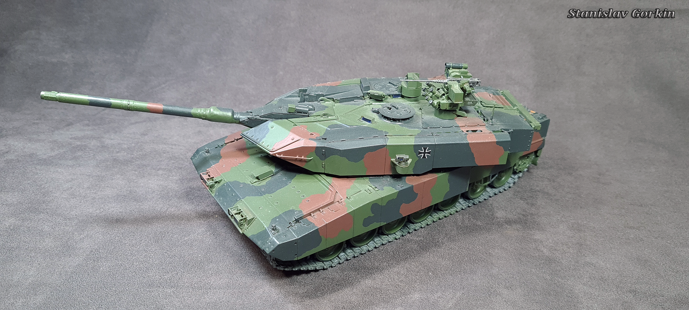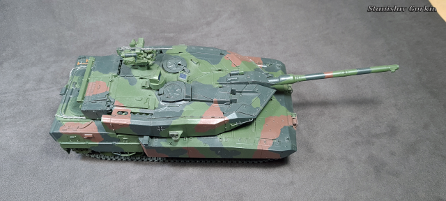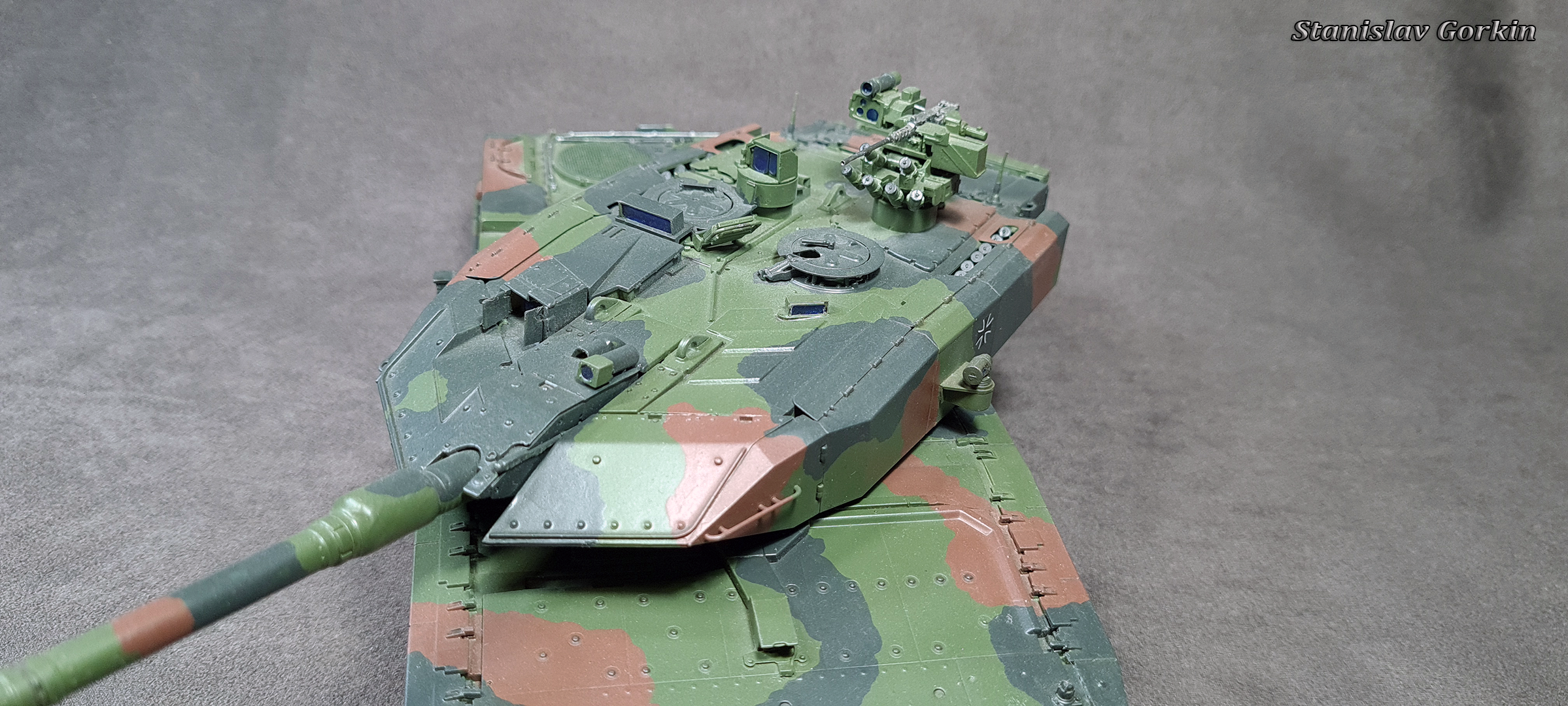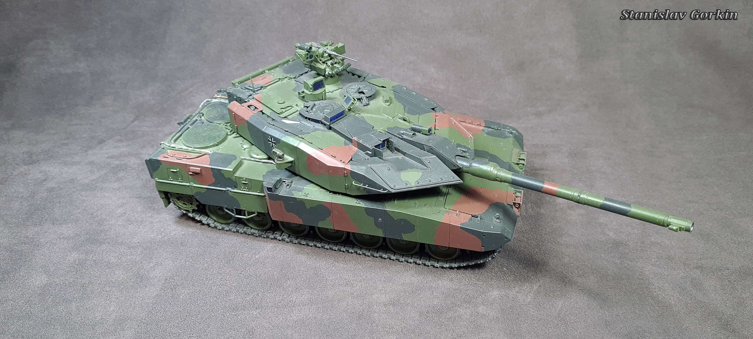 Моя первая модель от Meng. Тогда еще не было аэрографа у меня. Грунтовка Tamiya из баллона, база Nato Green Tamiya из баллона, остальное все кистью (краски Tamiya). После приобретения аэрографа покрыл модель лаком.