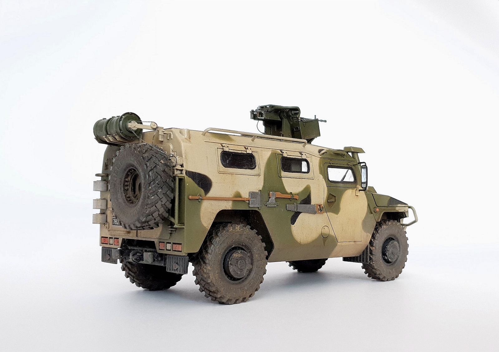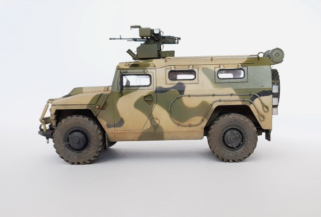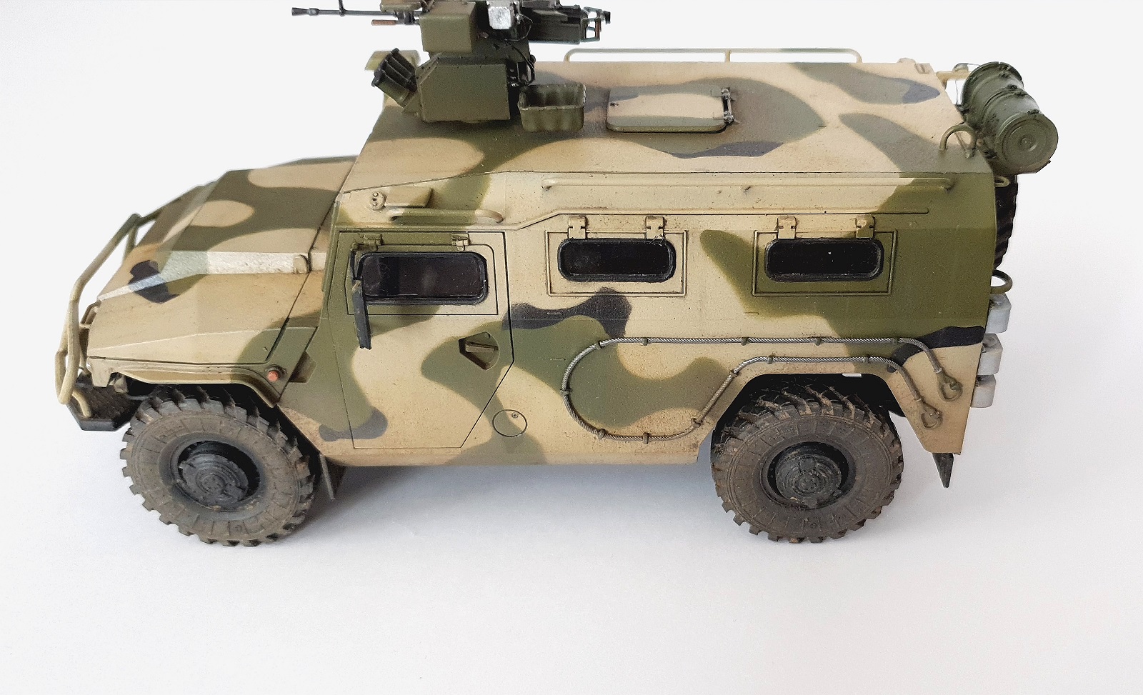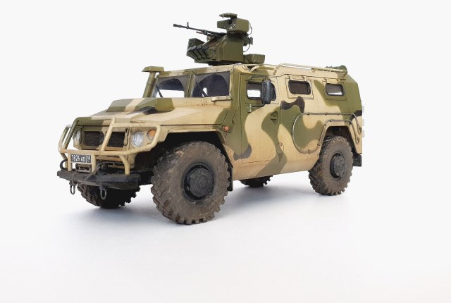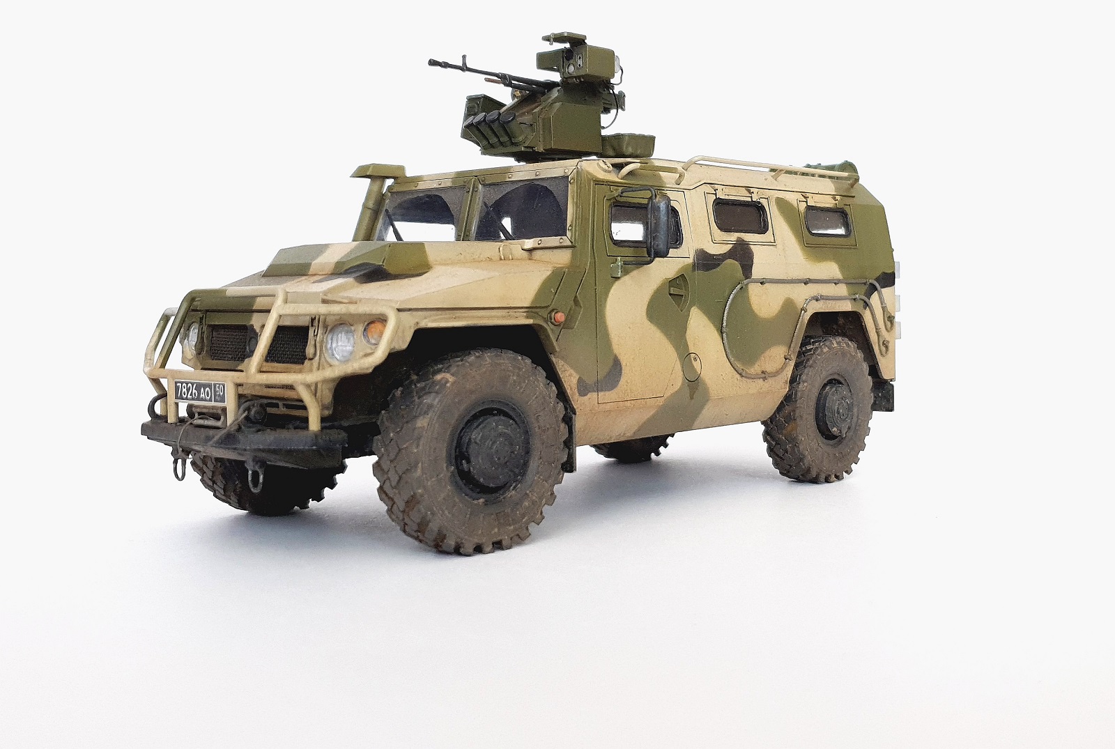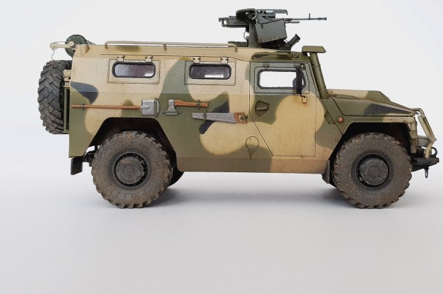 Представляю Вашему вниманию масштабную модель российского бронеавтомобиля ГАЗ «ТИГР-М» с модулем «Арбалет». Общее впечатление от набора хорошее, детали отлично стыкуются и проблем в сборке не было. Много уже было сказано о качестве колёс, но первое ,что бросилось в глаза, это тормозной механизм (барабанный тормоз). Он от первой модификации (233014). Замена колес не обсуждалась, но и с ними тоже есть проблемы.Об этом скажу далее.