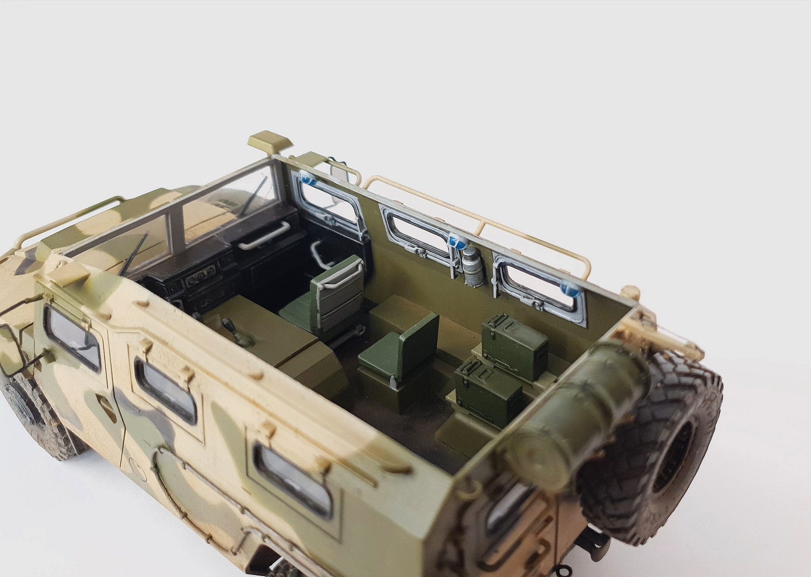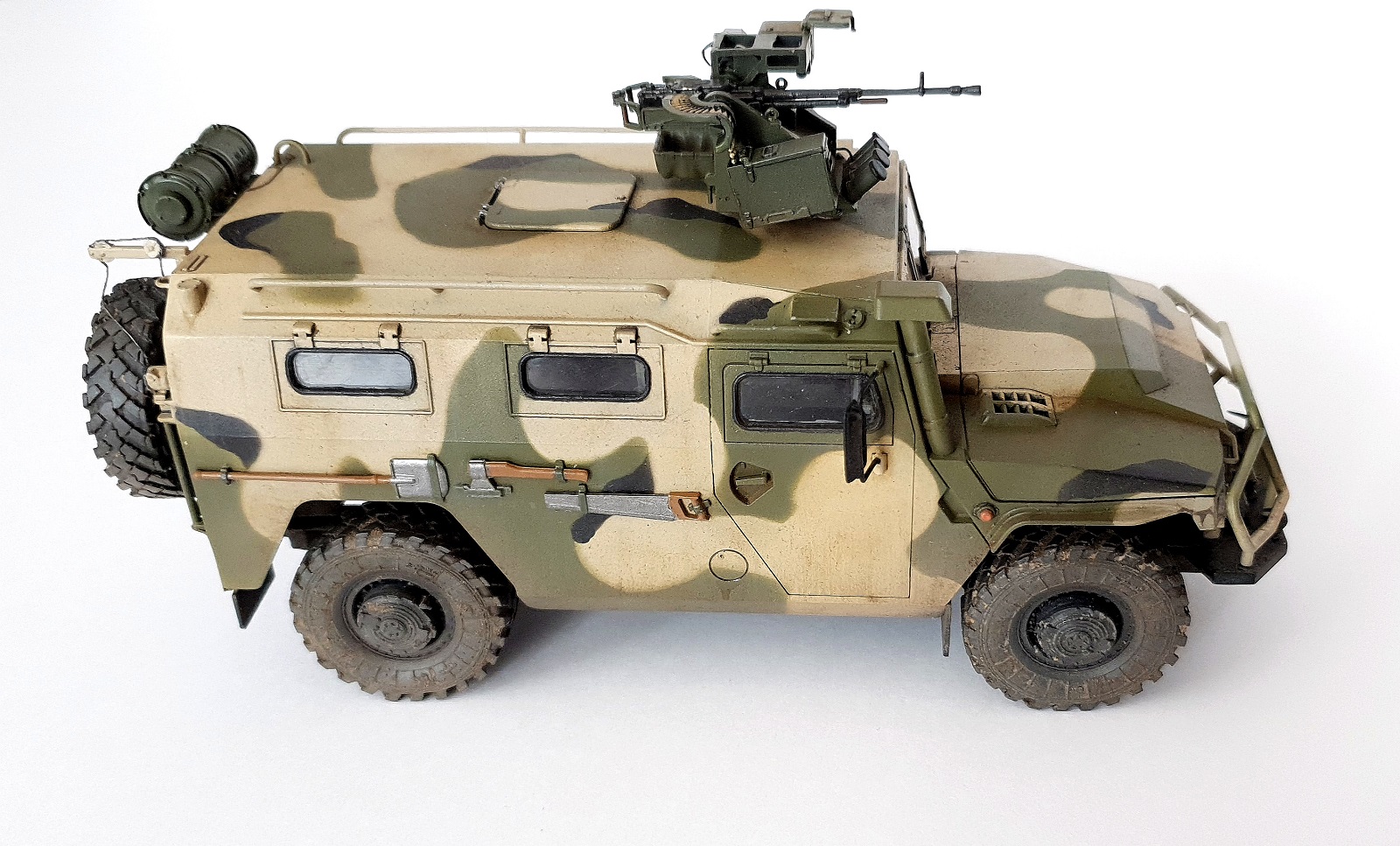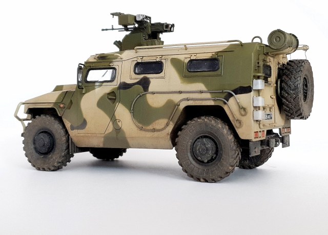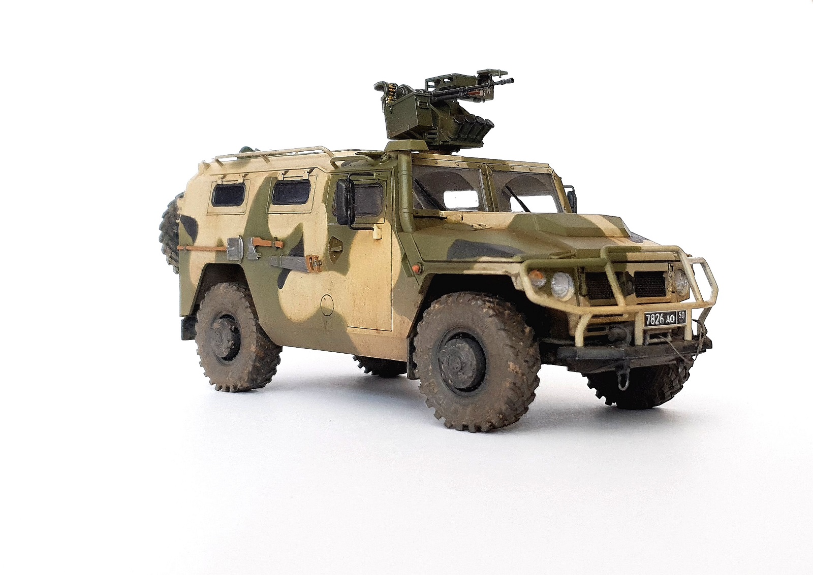 Представляю Вашему вниманию масштабную модель российского бронеавтомобиля ГАЗ «ТИГР-М» с модулем «Арбалет». Общее впечатление от набора хорошее, детали отлично стыкуются и проблем в сборке не было. Много уже было сказано о качестве колёс, но первое ,что бросилось в глаза, это тормозной механизм (барабанный тормоз). Он от первой модификации (233014). Замена колес не обсуждалась, но и с ними тоже есть проблемы.Об этом скажу далее.
