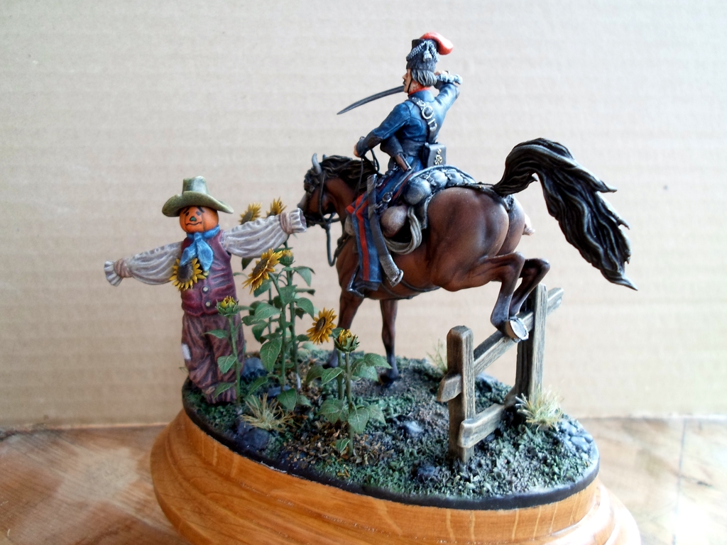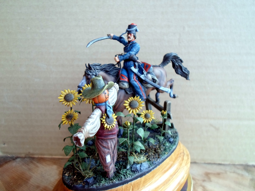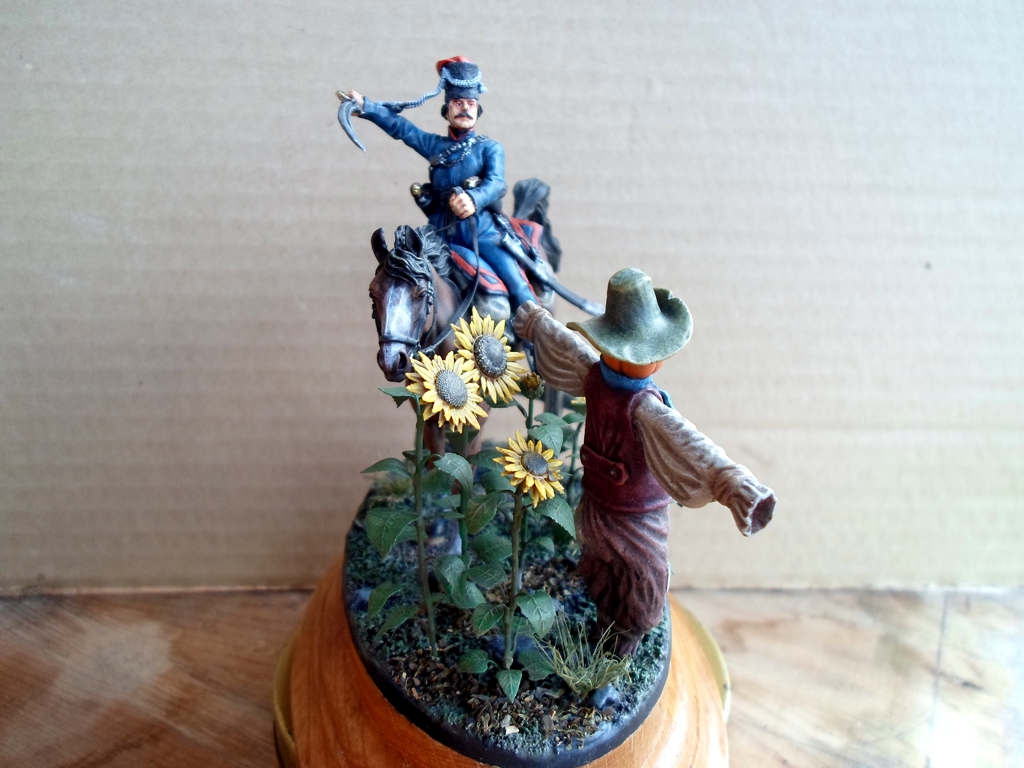 Казак - Chronos Miniatures, подсолнухи - Miniwarpaint, чучелко - самолепное. Краски акрил Звезда.