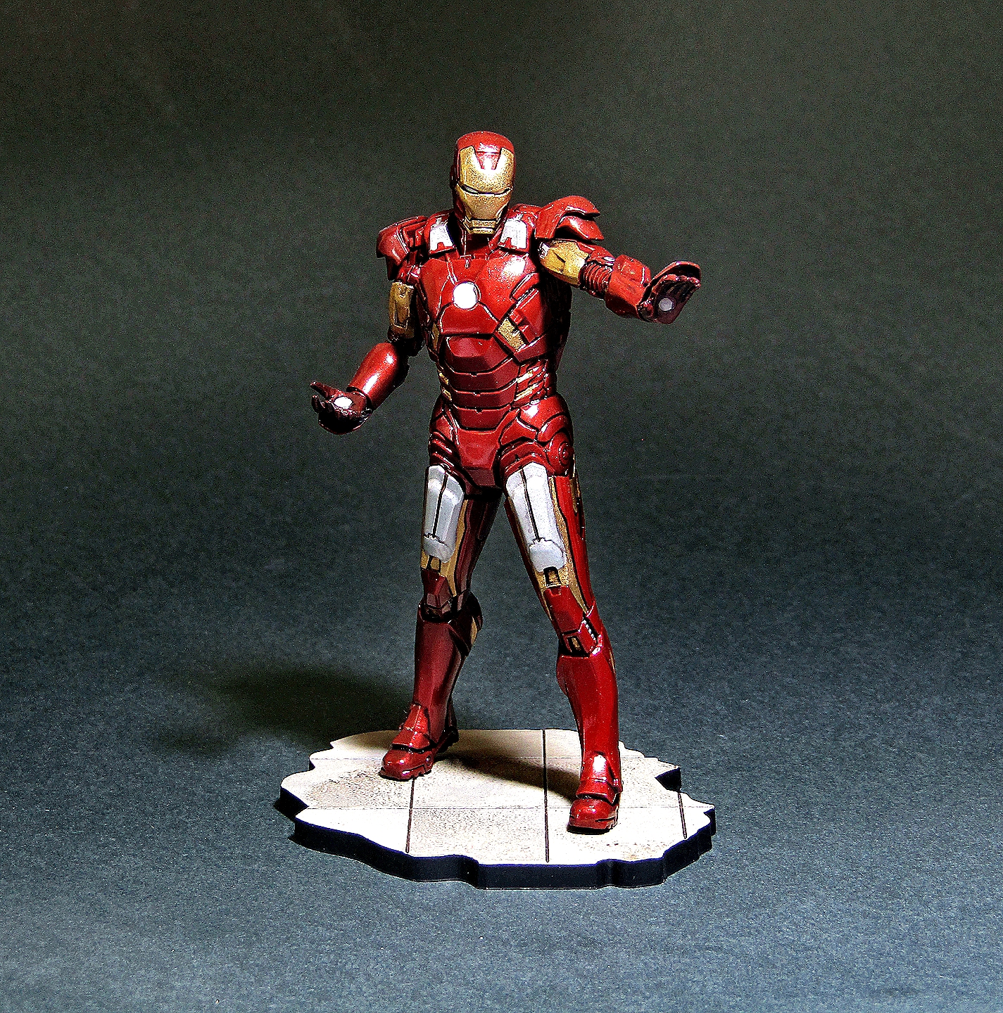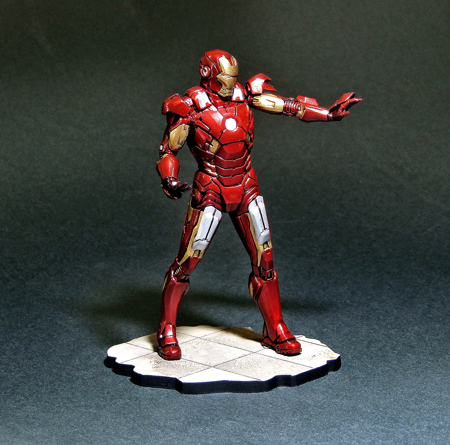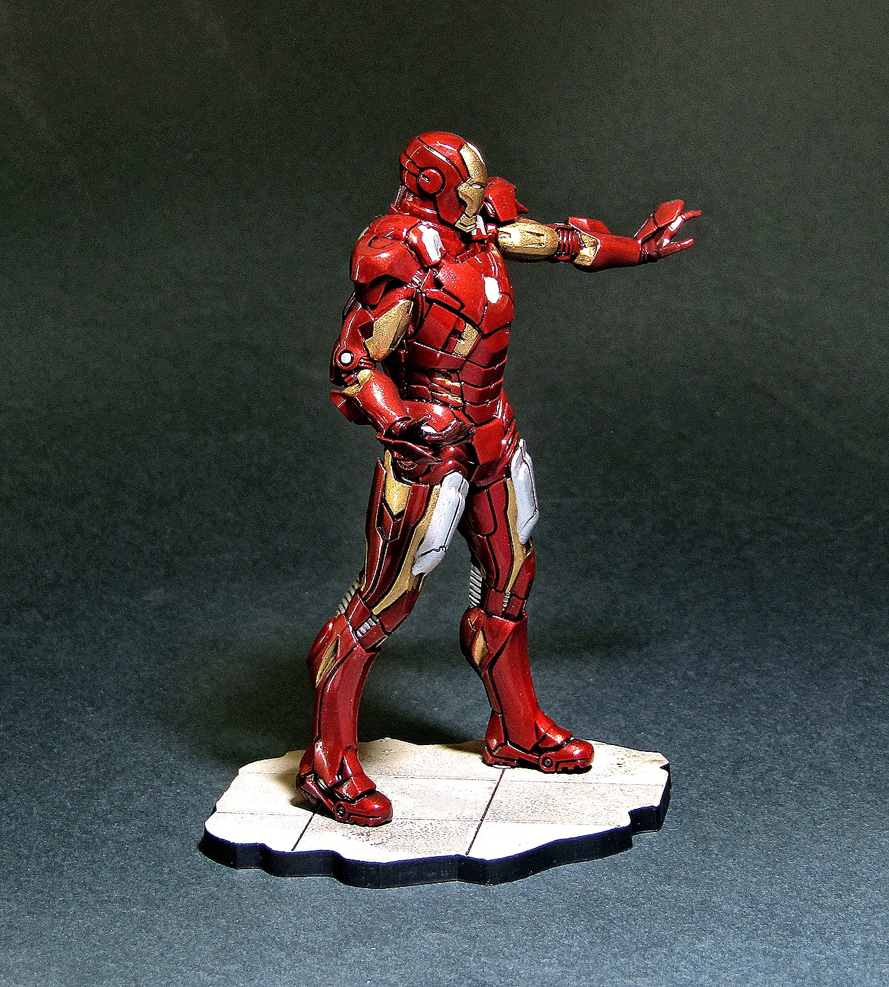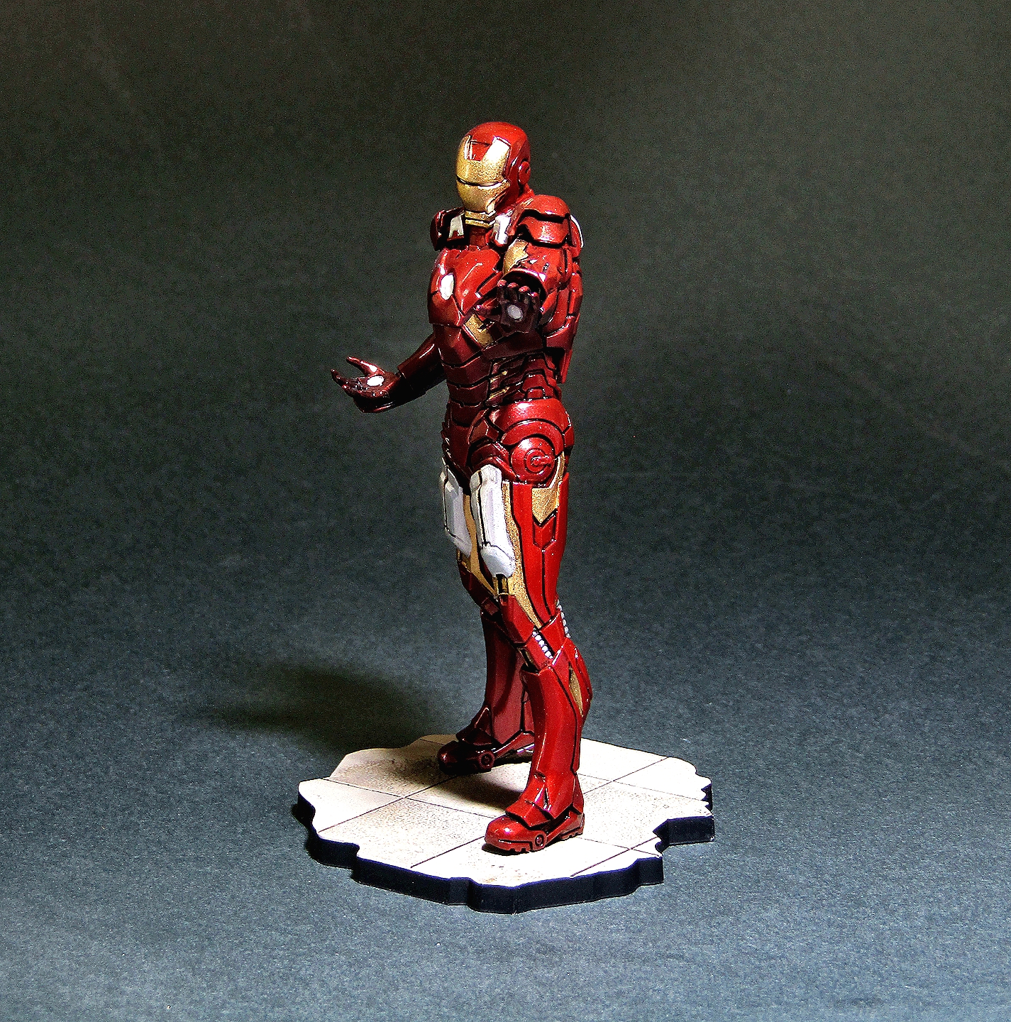 Приветствую! На этот раз представляю немного фантастики от студии Marvel. Фигурка Тони Старка в исполнении звезды мне очень понравилась, как по качеству литья, так и в плане сборки. На мой взгляд доработок не требуется. Грунтовал традиционно серым грунтом от Тамии, далее покрывал чёрным глянцем из балончика Motip, основной цвет наносил красным металликом LP от Тамии, золотые панельки эмалью от Ревелл, глянцевал лаком LP от Тамии, смывка от Тамии. Приятного просмотра...