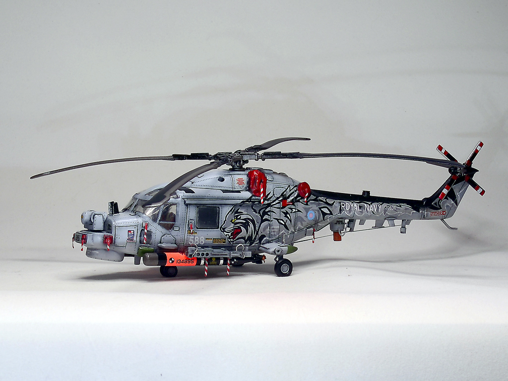 Купил давно, когда ещё не было HobbyBossa. Купился на красивую декаль. Но в коробке оказались даже не дрова, а обмылки. Деталировки никакой. Детское "Лего" наверно круче бы выглядело. Ну и декаль оказалась тоже никакой. Только та самая рысь и всё. Ни технички, ничего. Ну и поэтому коробка со всем этим была задвинута далеко-далеко. Не знаю почему, но почему-то была вытащена на свет Божий и как-то в раз собрана. Бывает такое. Пришлось нарезать расшивку, изготавливать всю деталировку из доширака и эвергриновского пластика. Декали собирал по остаткам от английских СиКингов. Не обошлось без проблем. Декль, как раз та самая "кошка" при переводе, пошла сыпаться. Хорошо попробовал на маленьком кусочке. Пришлось воспользоваться lIquidDecalFilm от Microscale. Декаль отлично восстановилась. Перевёл, но опять проблема. Из-за клея lIquidDecalFilm декаль получилась толстой и не хотела облегать изгибы фюзеляжа. Пришлось воспользоваться Жидкостью Mr.MarkSofter. Но она взяла и "сожрала" декаль. В результате "кошка" вся облезла и скрючилась. Пришлось счищать, то что "сгорело", и остальное дорисовывать фломастерами. Вроде бы получилось спасти модель. Но осадок остался.