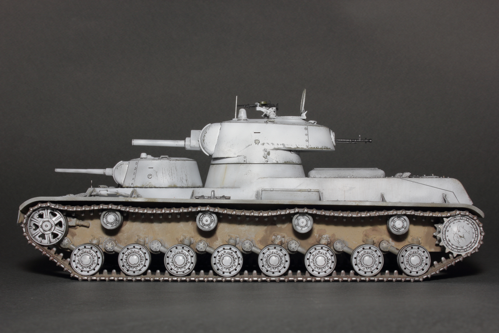 Выглядит симпатично. Не понял только, почему рукоятка у ДТ и гильзосборник выкрашены в белый? И углубления бронировок перископов лучше было бы закрасить глухим темным цветом.