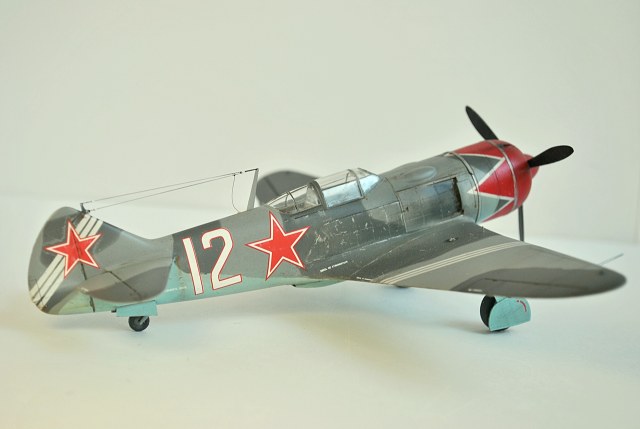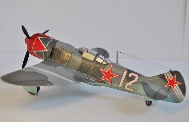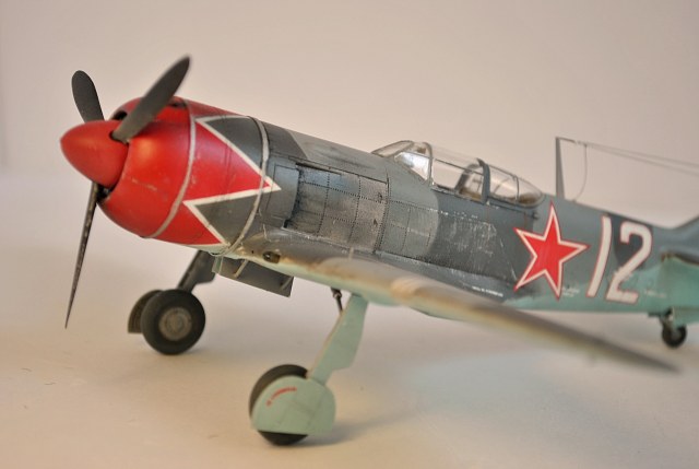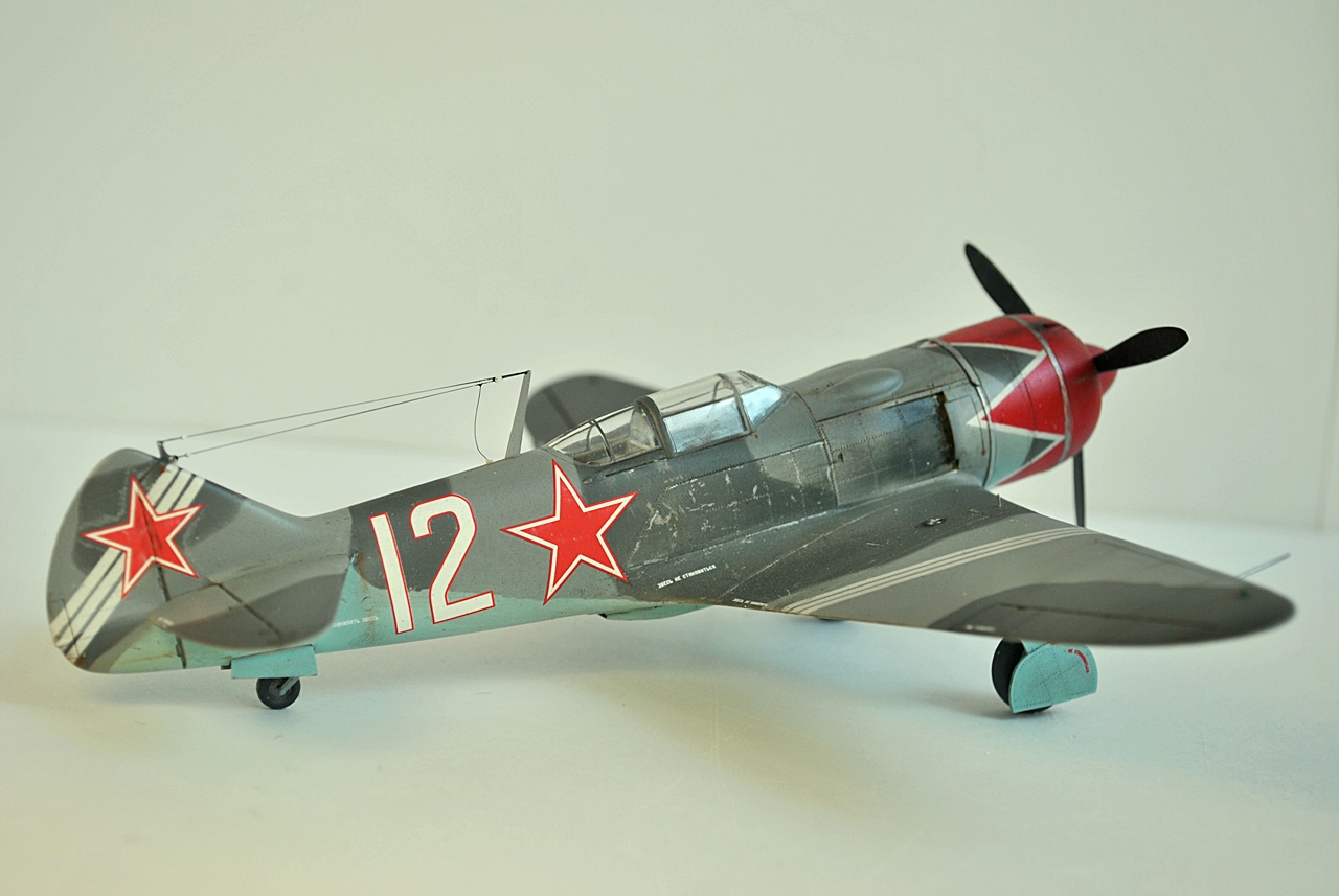 Перед праздником закончил сбоку Ла-7 от Эдуарда.Делал сразу две модели Ла-7:-в 48-м и 72-м масштабе,а кроме них параллельно и Ла-11.Набор известный и довольно старый.Косяков немеряно,что смог то поправил.