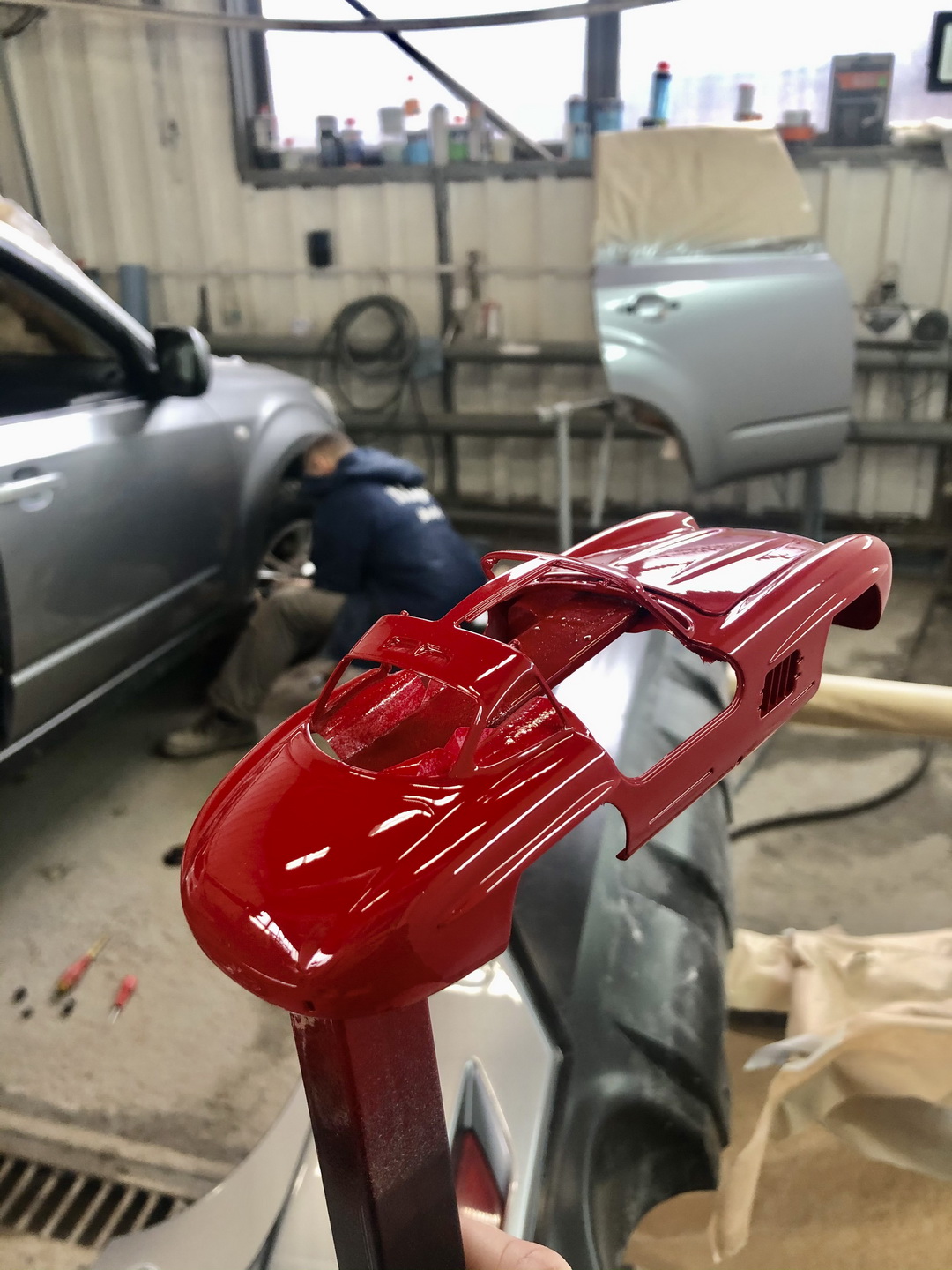 Также суровым испытанием была сборка комплектных хромированных элементов на кузов автомобиля: клей разъедает лак, поэтому малейшее корявое действие могло бы привести к трагедии... Но: все удалось!