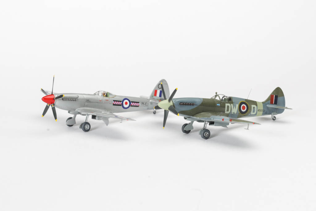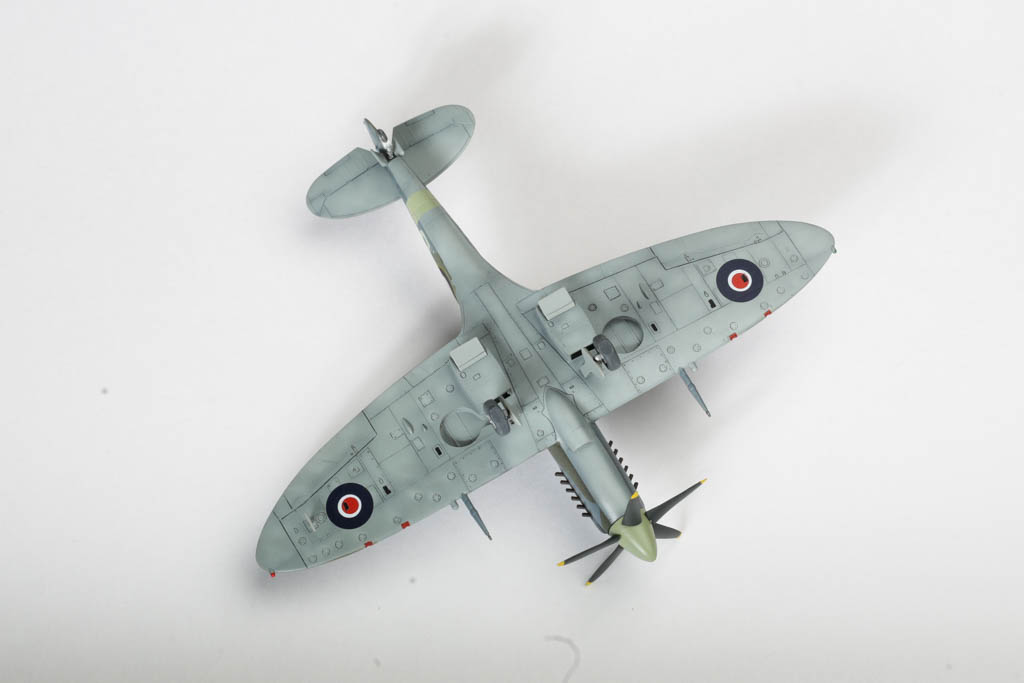 В начале 1943 года шесть Spitfire Mk.VIII (бортовые номера с JF316 по JF321) были задействованы в программе исследований улучшенных двигателей Griffon 61. По результатам испытаний самолёты были значительно доработаны (установлены новое вертикальное оперение увеличенной площади, симметричные подкрыльевые радиаторы нового дизайна, пятилопастный воздушный винт Rotol) и, после итоговых испытаний, новая модификация получила обозначение Mk.XIV.