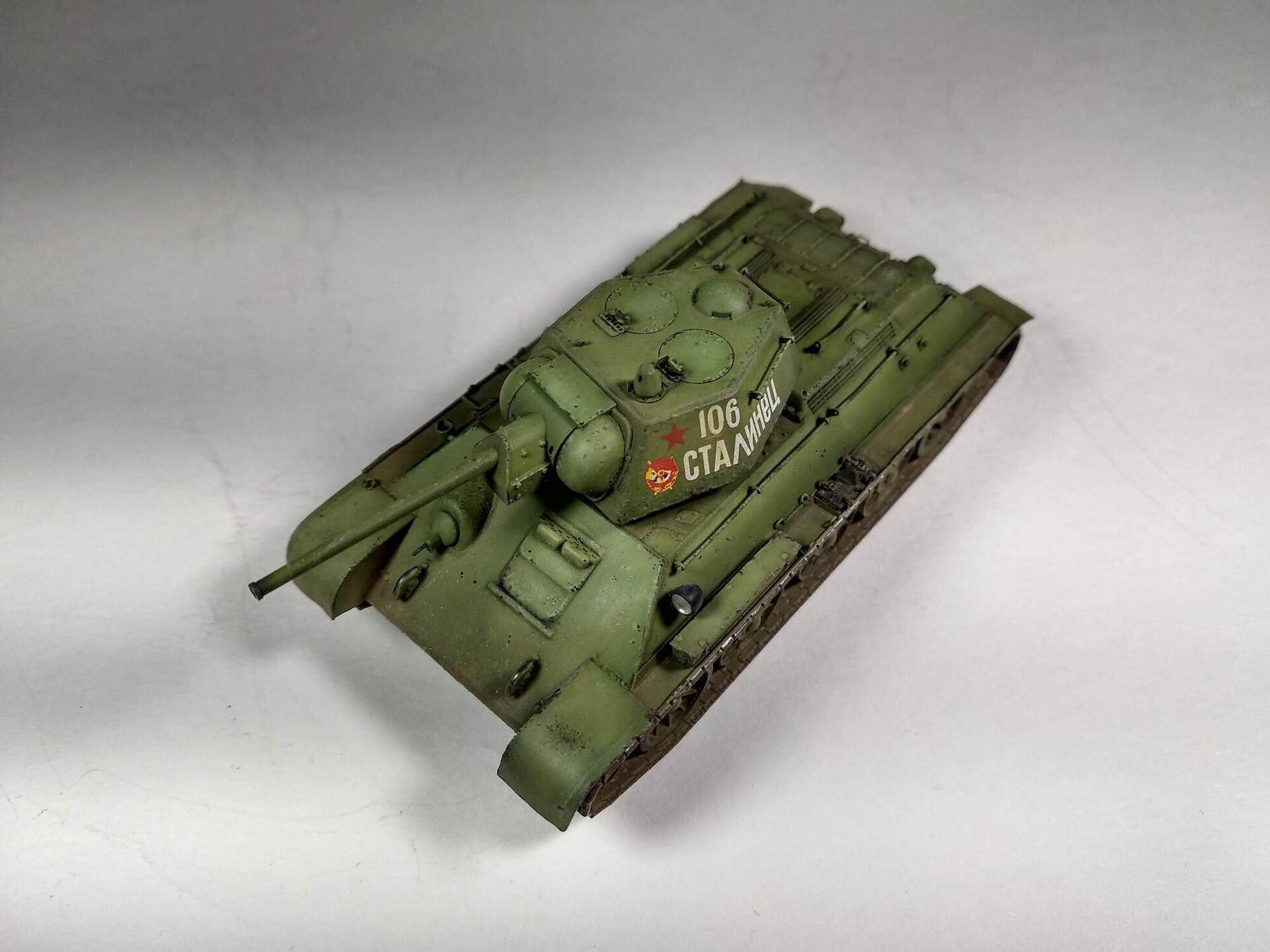Сталинец окрашивался в камуфляж. Это и в инструкции у Звезды отражено. Цвет далек от 4бо. Щели вентилятора можно было бы и сделать- это несложно.
