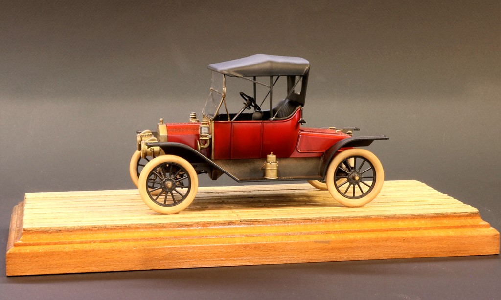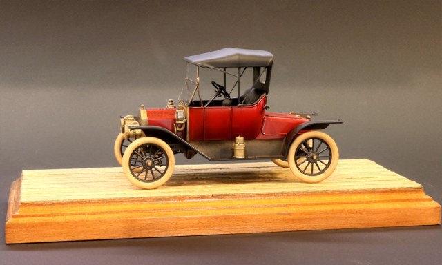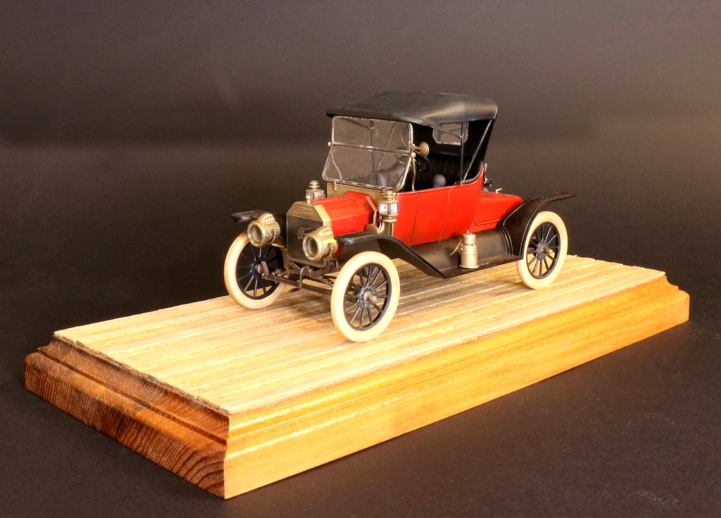 Очень красивая работа. Прешейдинг корпуса просто великолепен. А вот подставка на прзентационном фото подкачала. У той же Тамии есть имитация брусчатки. Даже если без подставки, то на сером фоне можно было добавить логотип :"FORD" и презентация вышла бы на 5+. Белые шины -ммммм.Просто вкусняшка для ценителей "олд-таймер".