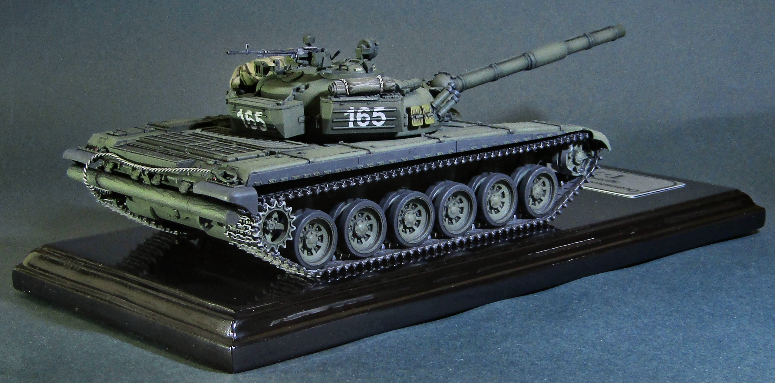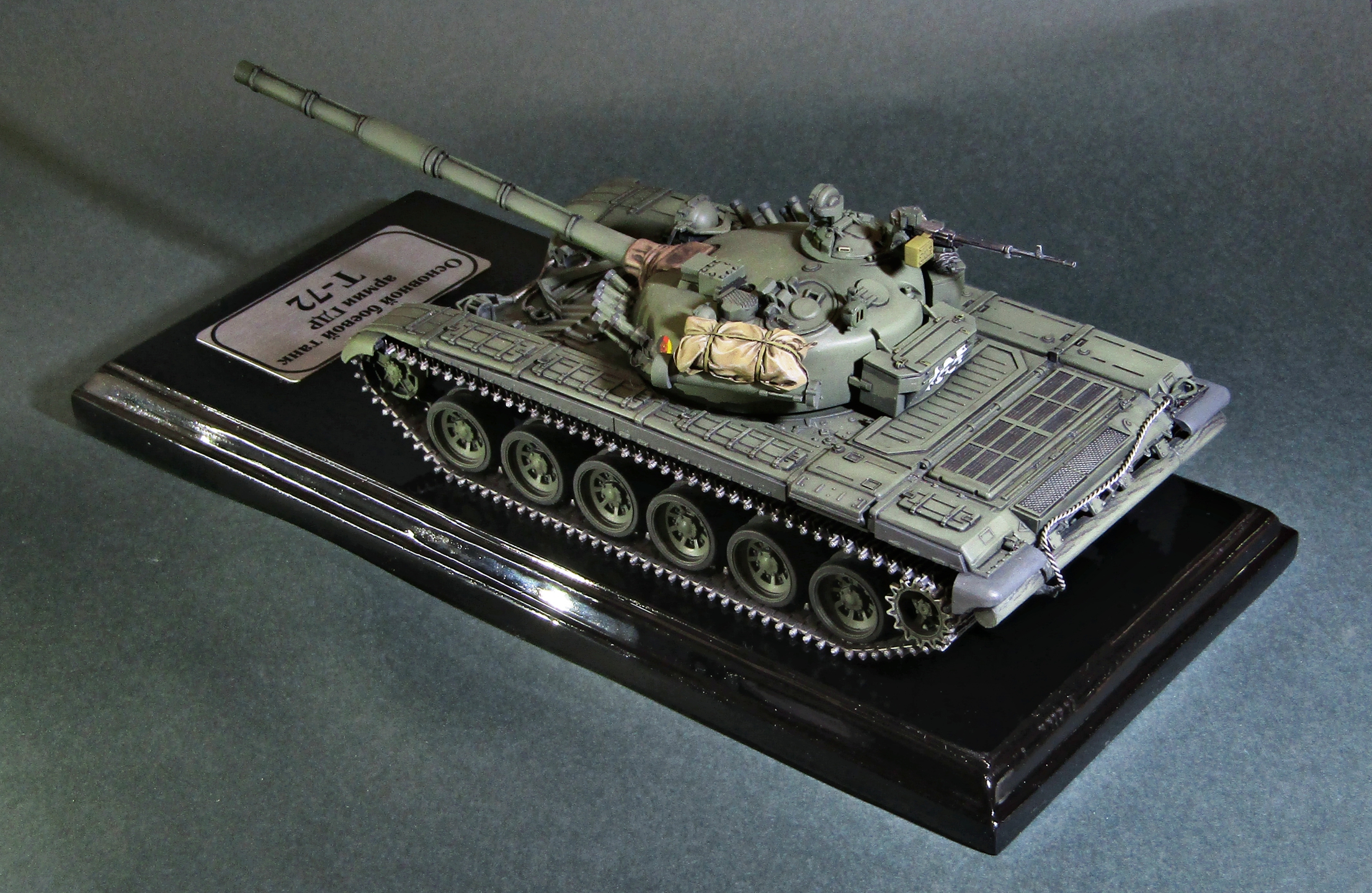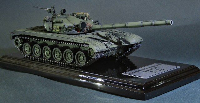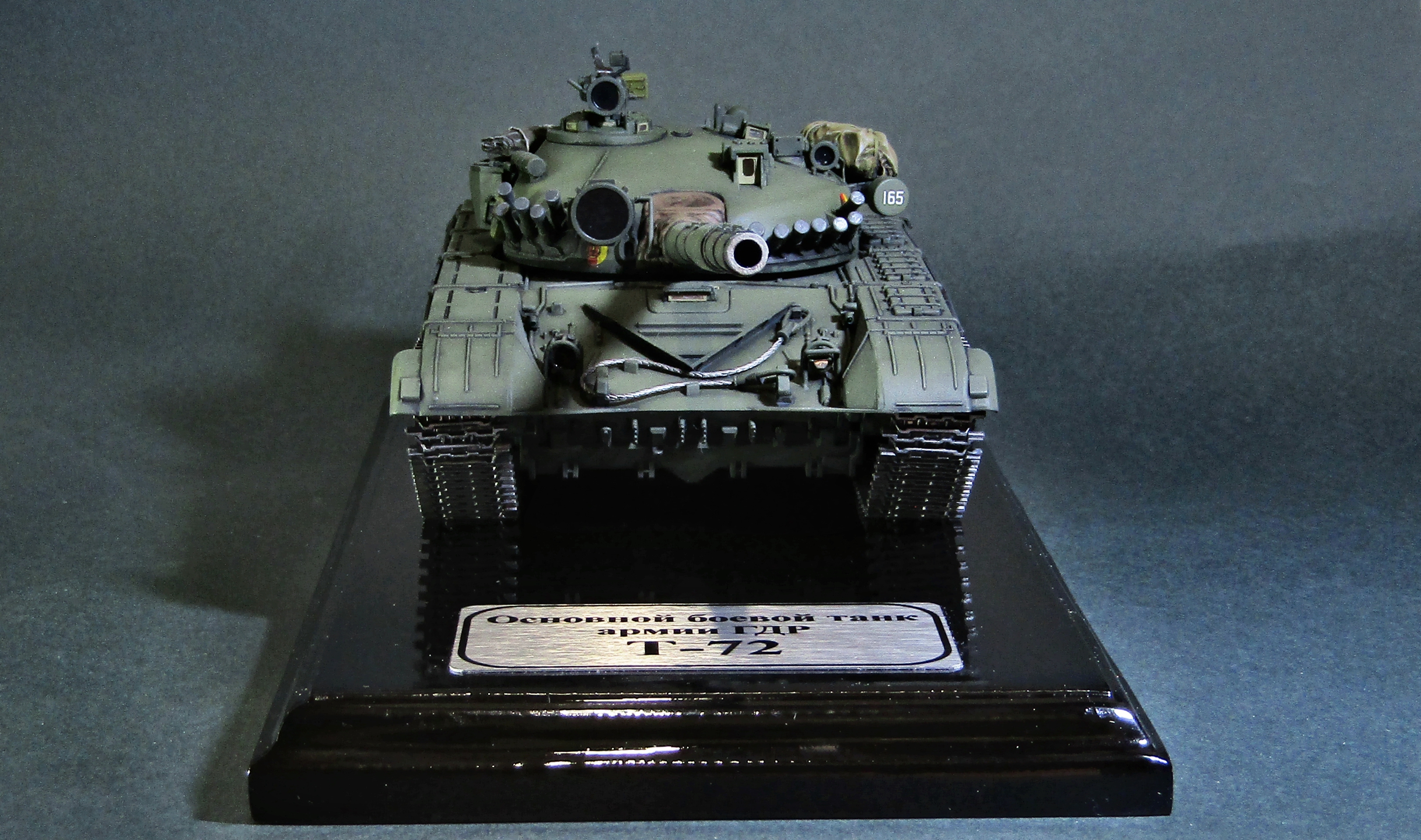 Приветствую коллеги! Представляю модель легендарного советского танка на службе в армии ГДР. Набор древний и в представлении не нуждается. Было решено собирать танк без бортовых экранов для большей брутальности (по крайней мере так он мне больше по душе). ГДР'овских декалей нигде в свободной продаже как ни странно не нашёл, поэтому пришлось докупать ICM'ский 131 ЗИЛ и брать эмблемы оттуда. Дополнял башню смоляными скатками от ZIP maket и триплексами и оптикой из прозрачного пластика. Грунтовал серым грунтом от Тамии, далее чёрный прешейдинг, базовый цвет XF-13 от Тамии с высветлениями. Чёрная смывка от Тамии и финишное матовое покрытие эмалевым лакои от Revell. Везеринг делать не захотелось, т.к. лично мне грязный танк без диорамы на чистой подставке не очень нравится. Подставка самодельная из дерева, покрыта чёрной глянцевой 2к акриловой краской. Приятного просмотра...