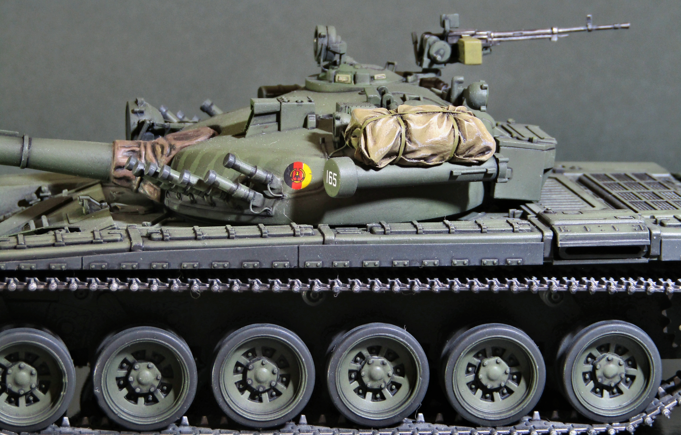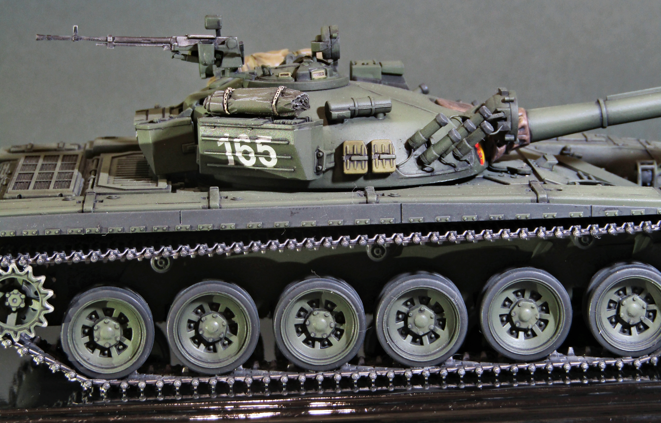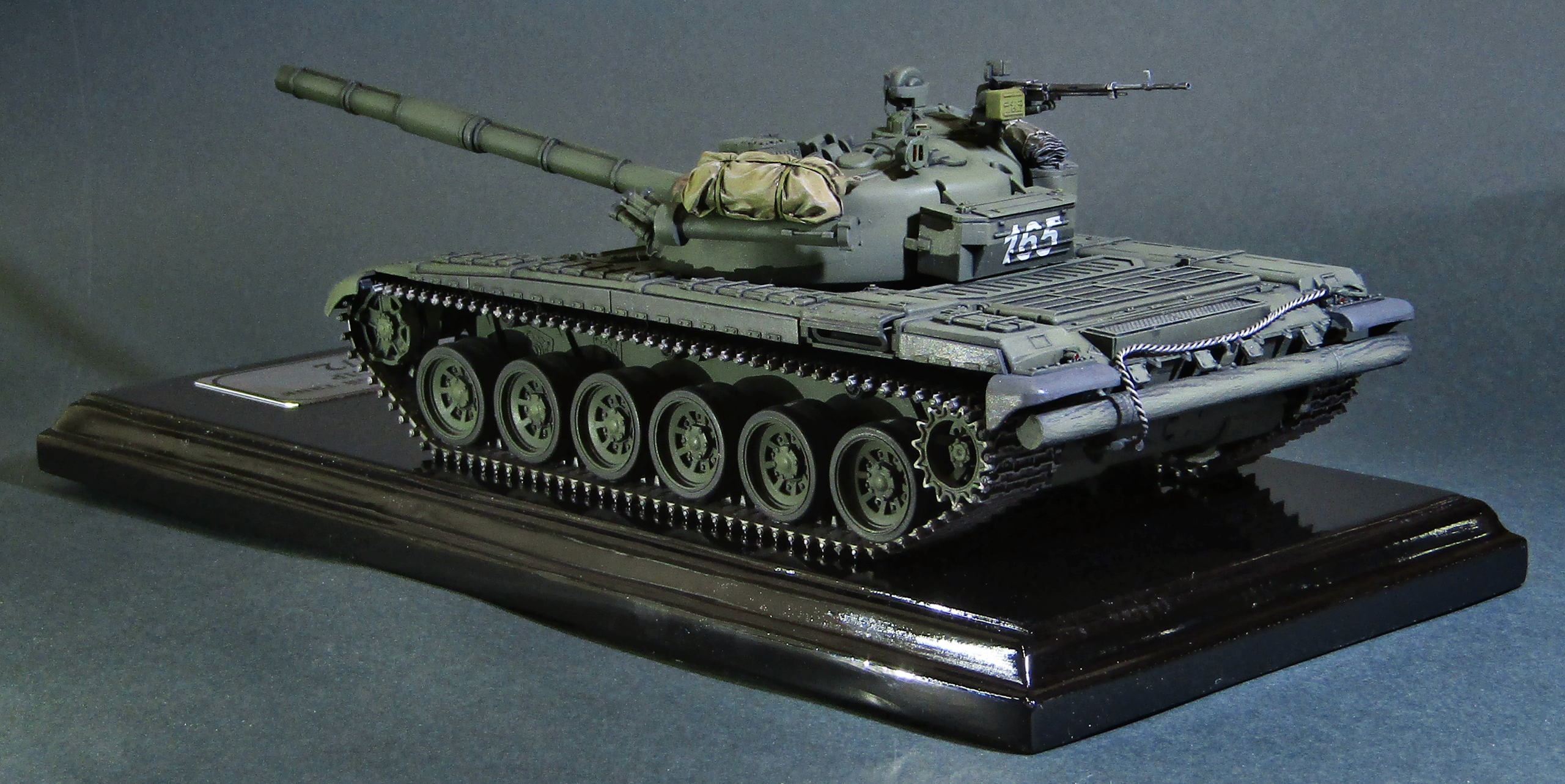 Приветствую коллеги! Представляю модель легендарного советского танка на службе в армии ГДР. Набор древний и в представлении не нуждается. Было решено собирать танк без бортовых экранов для большей брутальности (по крайней мере так он мне больше по душе). ГДР'овских декалей нигде в свободной продаже как ни странно не нашёл, поэтому пришлось докупать ICM'ский 131 ЗИЛ и брать эмблемы оттуда. Дополнял башню смоляными скатками от ZIP maket и триплексами и оптикой из прозрачного пластика. Грунтовал серым грунтом от Тамии, далее чёрный прешейдинг, базовый цвет XF-13 от Тамии с высветлениями. Чёрная смывка от Тамии и финишное матовое покрытие эмалевым лакои от Revell. Везеринг делать не захотелось, т.к. лично мне грязный танк без диорамы на чистой подставке не очень нравится. Подставка самодельная из дерева, покрыта чёрной глянцевой 2к акриловой краской. Приятного просмотра...