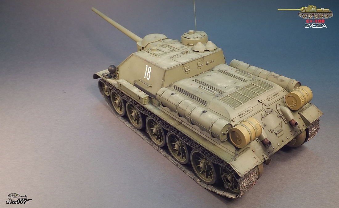 *презентирую свою очередную модель/дай Бог,не последнюю…*в этот раз будет советский истребитель танков в 35-м масштабе от лобненской «Звезды»*набор меня порадовал/в,принципе-очень приличный продукт*правда,родные катки,как по мне,смотрелись как-то скучно-заменил их на «миниартовские…заодно и траки,чтобы добру не пропадать*в итоге,получилась явно послевоенная машина*сборка-изкаробка/добавки-трос от Еуреки,сетка на МТО от Абер*покраска нитроэмаль,акрил,масло,пигменты*