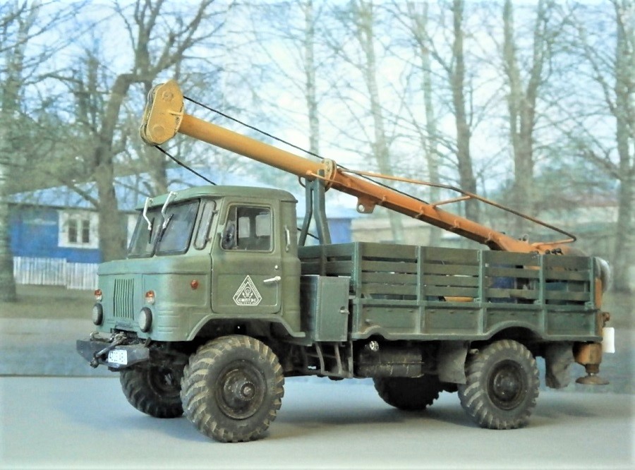 Всех приветствую! Свежая моя работа, ямобур или буроям на шасси ГАЗ-66. Кроме смоляных колёс, модель грузовика- изкаропка. Производителя колёс не знаю/не помню, мне их презентовал Сергей Горлов, идею подкинул, отснял отдельные узлы и машину целиком Юра Зуйко. Спасибо им за помощь! По сложившейся традиции образ получился собирательный:)) Установка подвижная: поднимается вертикально, опоры выдвигаются, сам "БУР" прокручивается и имеет небольшой ход вверх-вниз.
