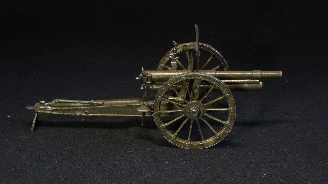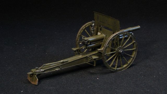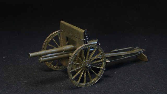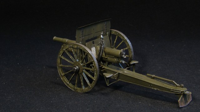 Немного истории. Разработана на Путиловском заводе в Санкт-Петербурге конструкторами Л. А. Бишляком, К. М. Соколовским и К. И. Липницким с учётом опыта производства и эксплуатации российских орудий. Производство орудий было организовано на Путиловском, Обуховском и Пермском заводах. На Санкт-Петербургском орудийном заводе изготавливались стволы, лафеты для которых собирались на Петербургском, Киевском и Брянском арсеналах. В 1906 году пушку модернизировали: на орудие стали устанавливать щитовое прикрытие, в связи с чем из конструкции были исключены два сидения для расчета, установили прицел панорамного типа с артиллерийской панорамой системы Герца, которые производились на Обуховском заводе. К началу Первой мировой войны орудия обр.1902 года являлись основным типом полевой артиллерии в войсках Российской империи. Пушка активно использовалась в русско-японской войне, Первой мировой, гражданской войне в России, а также других вооружённых конфликтах на территории бывшей Российской империи. Модернизированные варианты этой пушки использовались в начале Второй мировой войны.Модель Трехдюймовой полевой пушки 1902 г., набор UMmt 624, 1:35. Стыкуемость деталей средняя, инструкция по сборке малоинформативная, в наборе присутствует фототравление. Сборка изкоробочная, с небольшими добавлениями в деталировке модели, обода на колесах из баночной жести. Окраска Tamiya, сколы, потертости Pacific88.