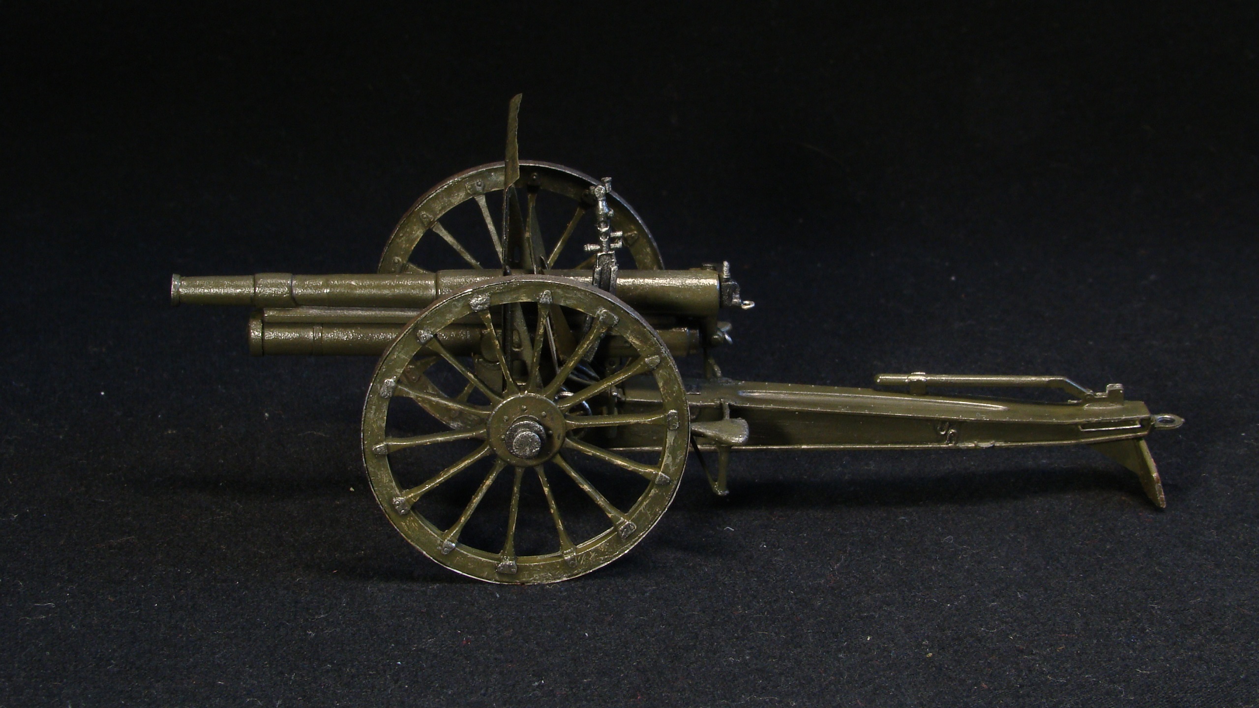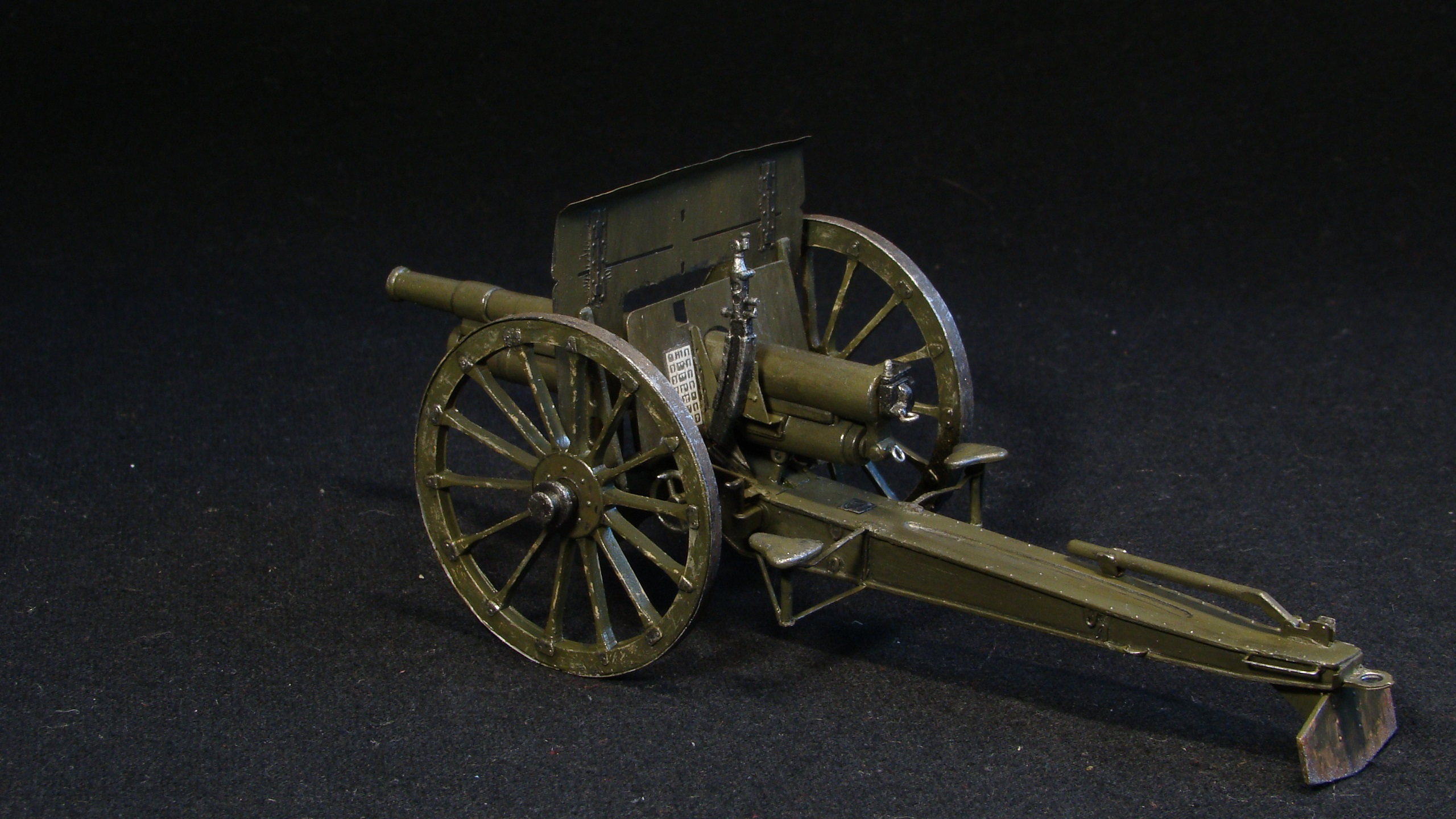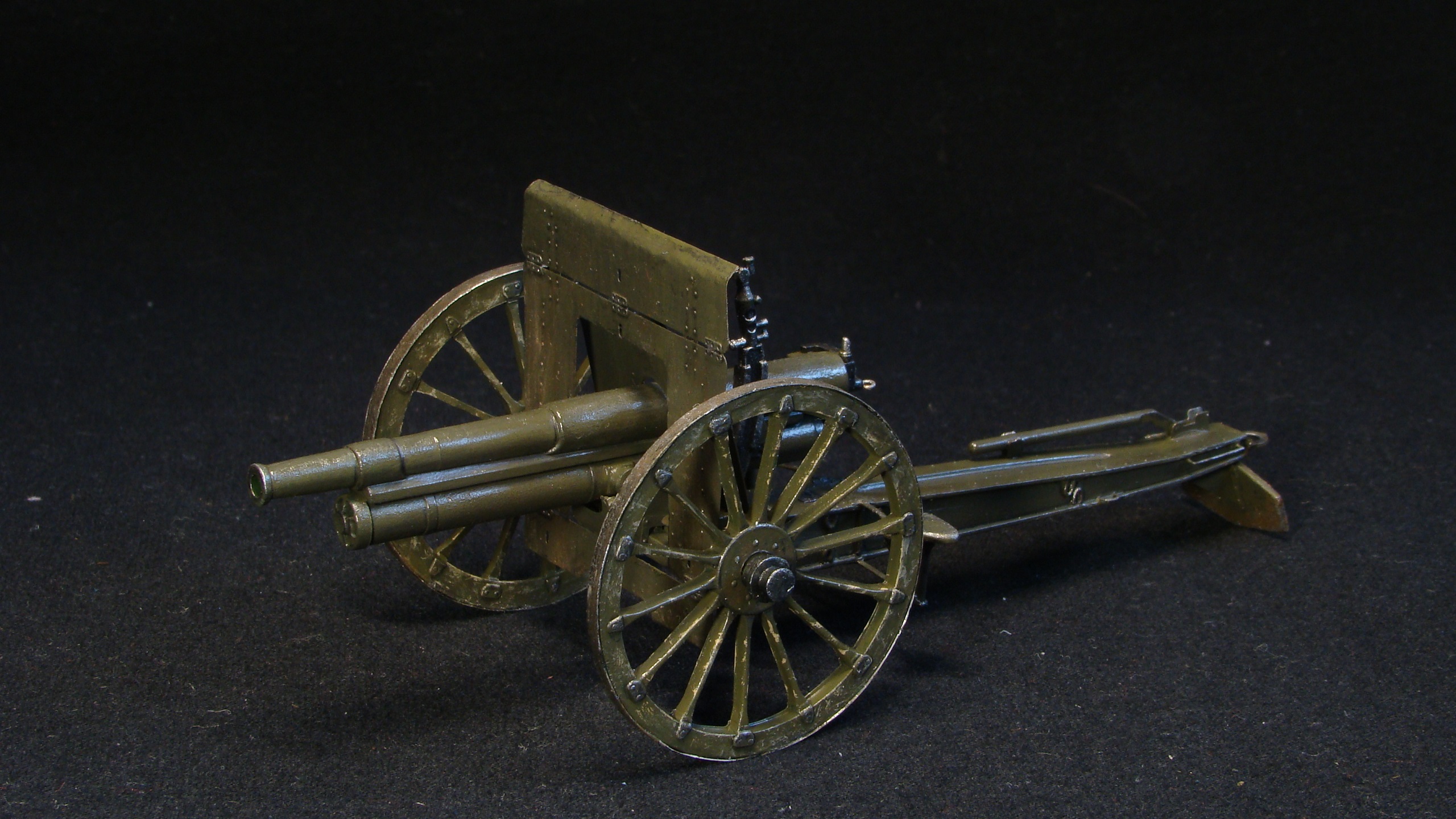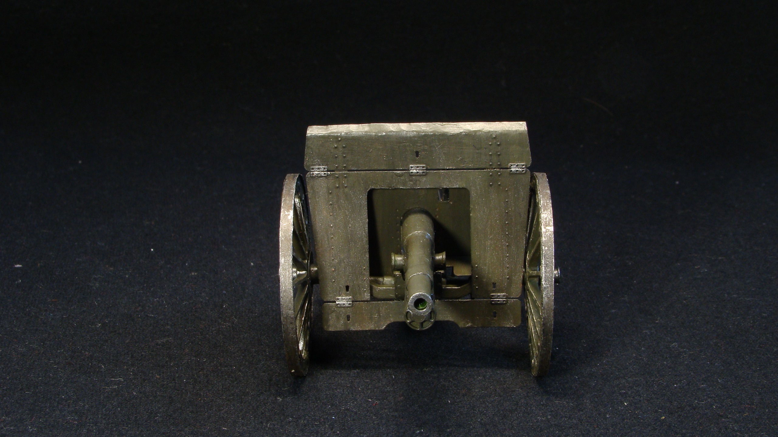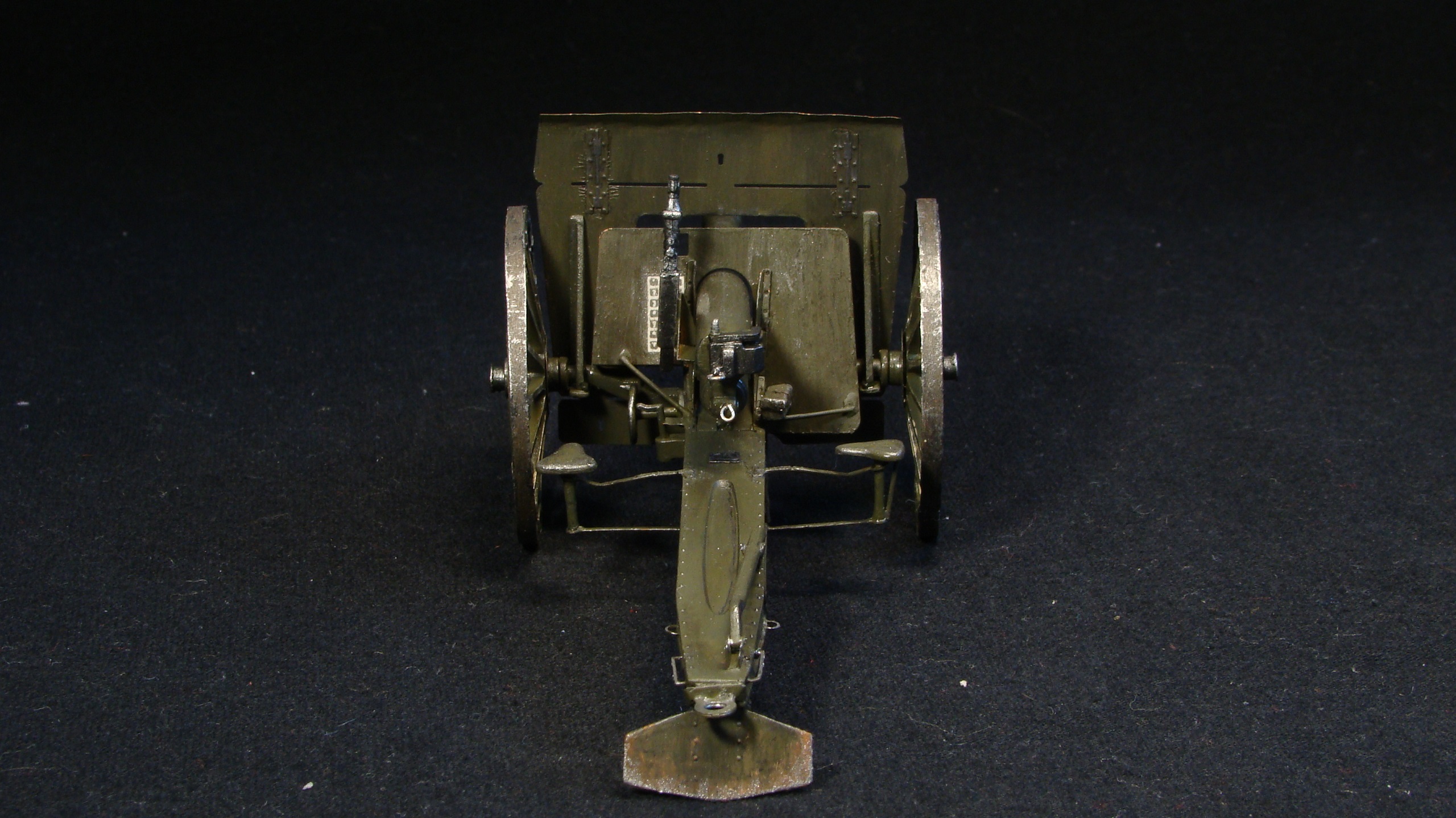 Редкая модель заслуженного орудия, на первый взгляд простая, но требует серьезных доработок. Хорошо, что в наборе хоть фототравление есть. Матчасть не трогаю, ибо ее почти нет. Цвет самого орудия спорный для ранних орудий, канал ствола не окрашен.