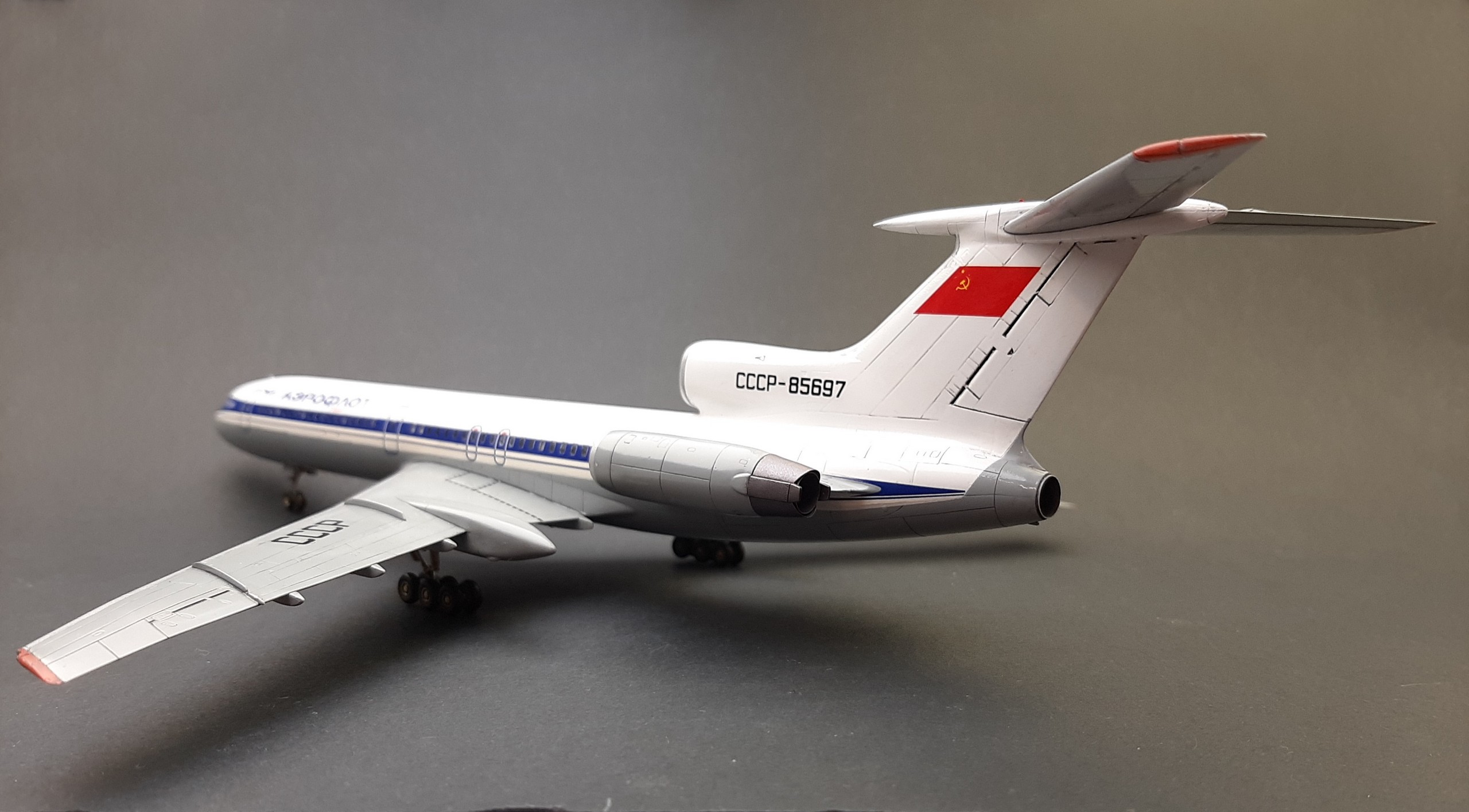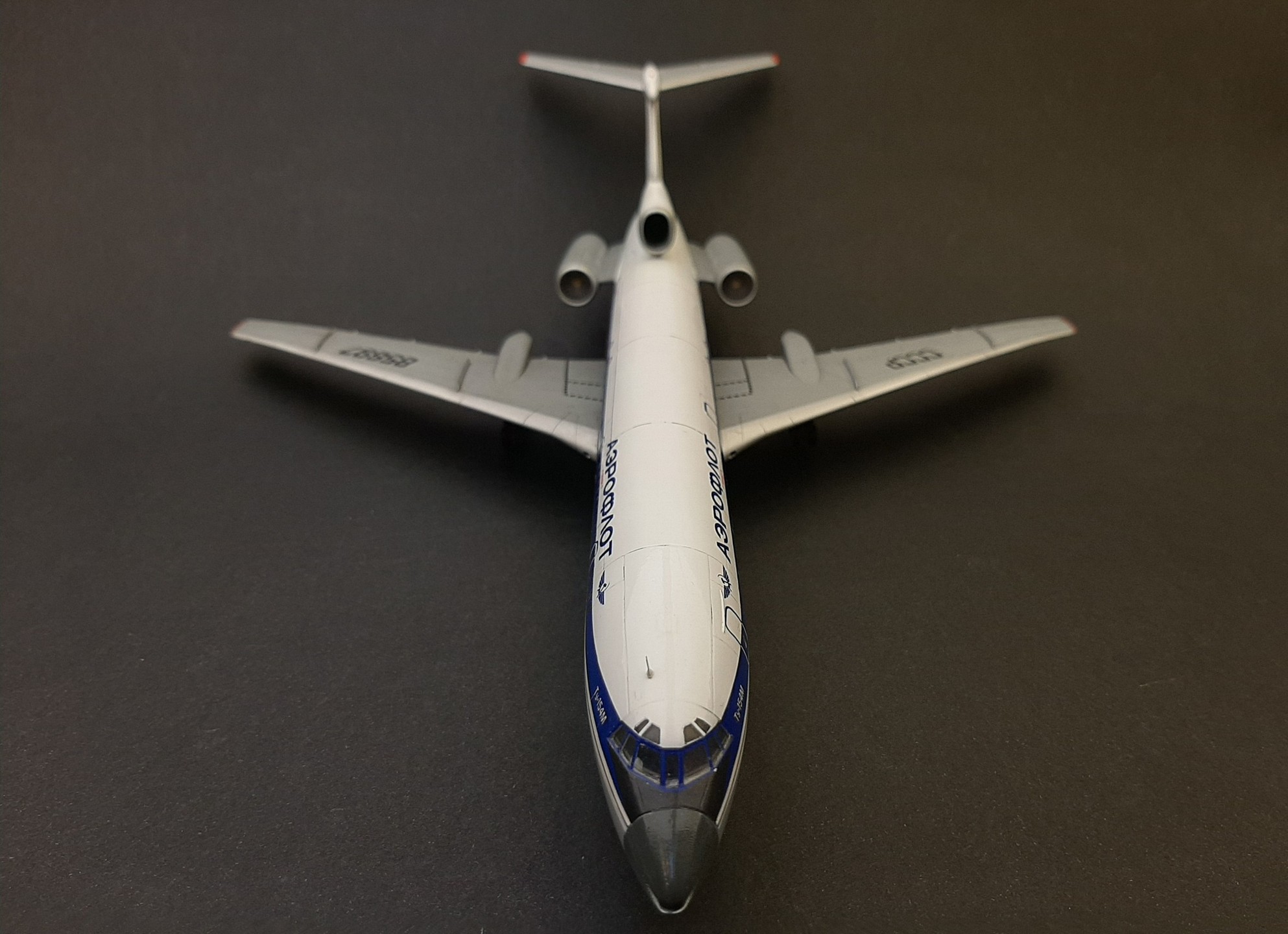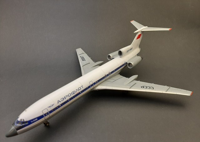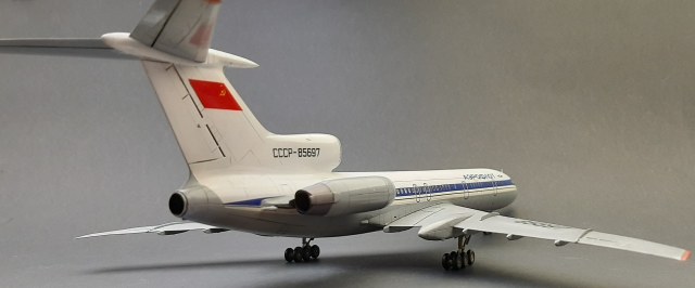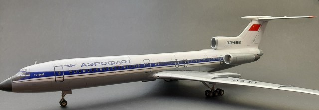 Модель начал строить очень давно, но забросил в долгий ящик. При постройке были использованы смоляные дополнения от Small Staff ВНА двигателей и створки реверса. Неудачно покрасил их, перекрашивать уже не стал. Лень. ВНА надо было покрасить сначала чёрной краской, а затем сбоку серебрянкой, что бы выделить глубину детали. Смывкой сделать этого не получилось. Колёса из этого набора не стал ставить, поставил изкоробочные. Декаль от Pas Decals подаренная мне Вадимом fat c сайта гражданской авиации, за что ему огромное спасибо! Отличается от изкоробочной отсутствием захода синей полосы на хвост самолёта, ну и конечно другим регистрационным номером. Туполь с белым хвостом. Сделал посадочные фары, использовав самые мелкие отражатели из набора ELF. Вроде всё. Спасибо за просмотр!