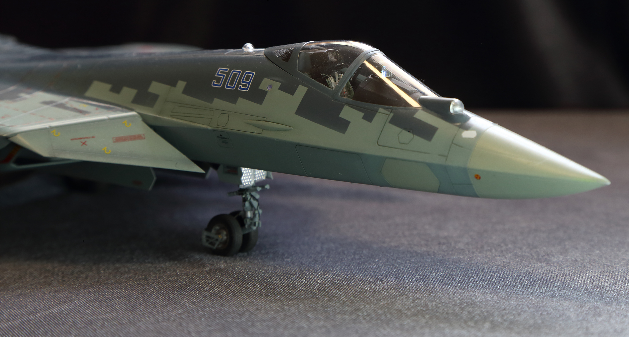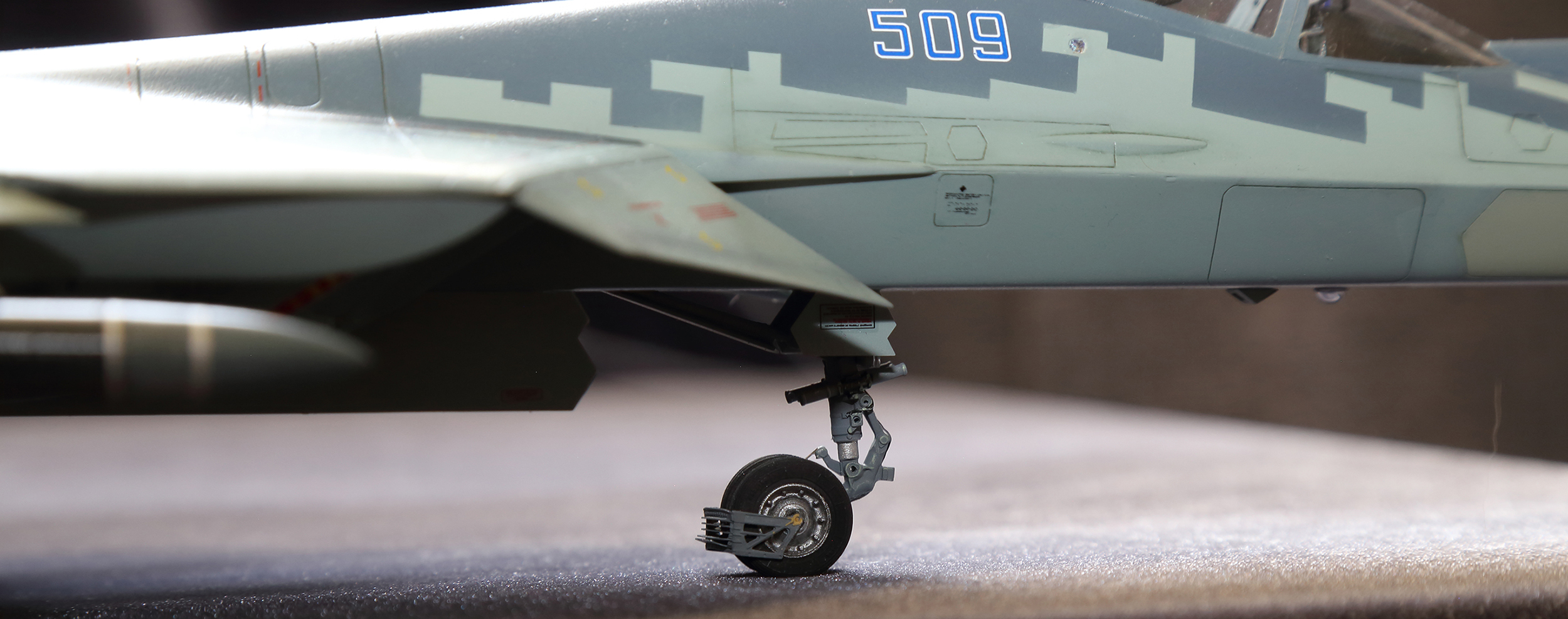 При сборке использовал смоляные колеса и сопла, травление от МД и кабину от квинты.