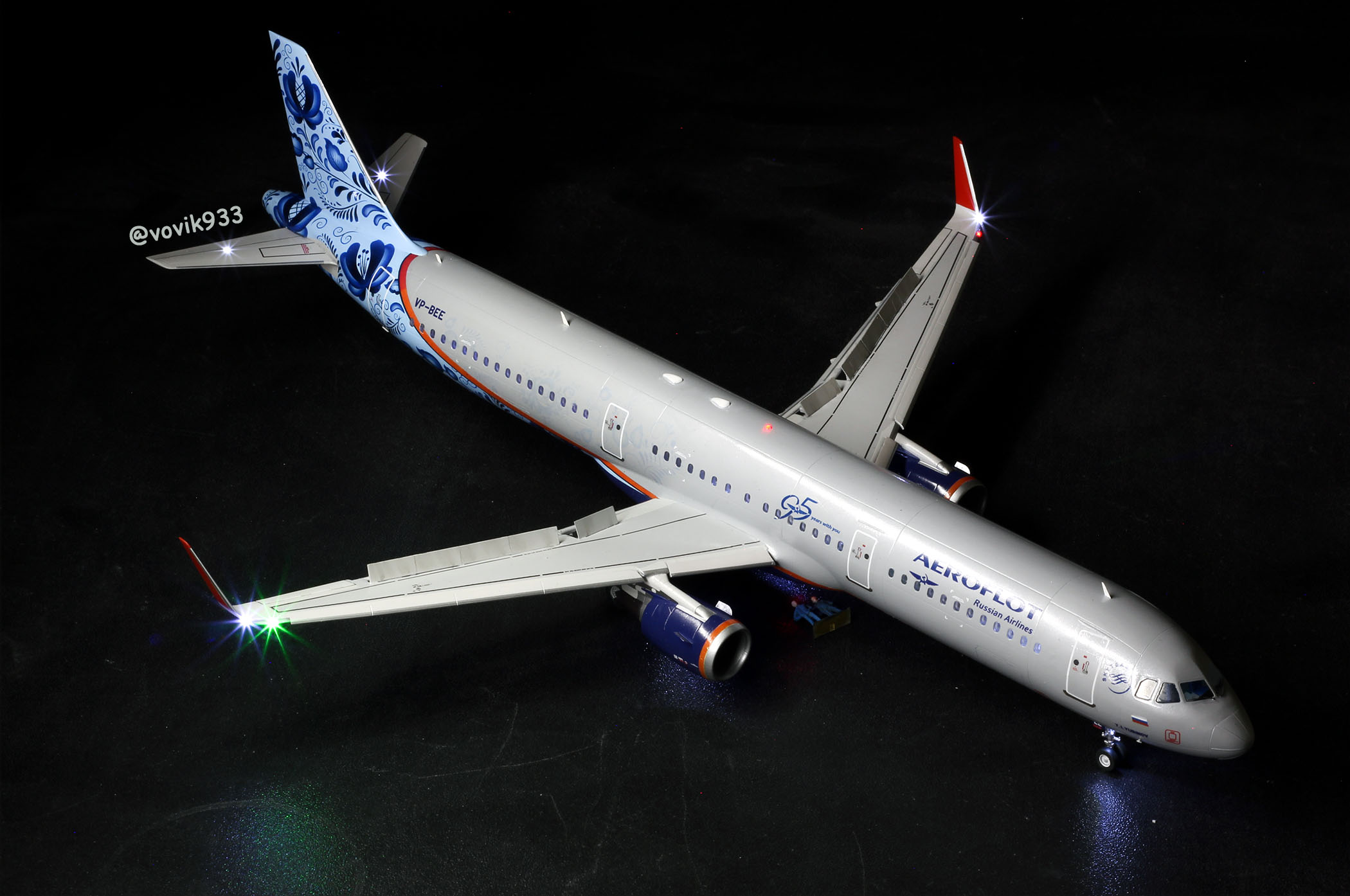 Честно говоря, сомневался, выкладывать модель или нет, потому что гжель уже собирал и показывал. Но подумал, что со светом и закрылками, кому-то и будет интересно, хотя и заметил, что современная ГА вызывает меньше откликов, чем советская класика. Модель от звезды, декаль от Ascencio, инсталляцией света занимался Горев Борис (instagram @ledformodels), покрасил и дособрал я сам! Тапки и табуретки приветствуются, чтоб глаз не замыливался.