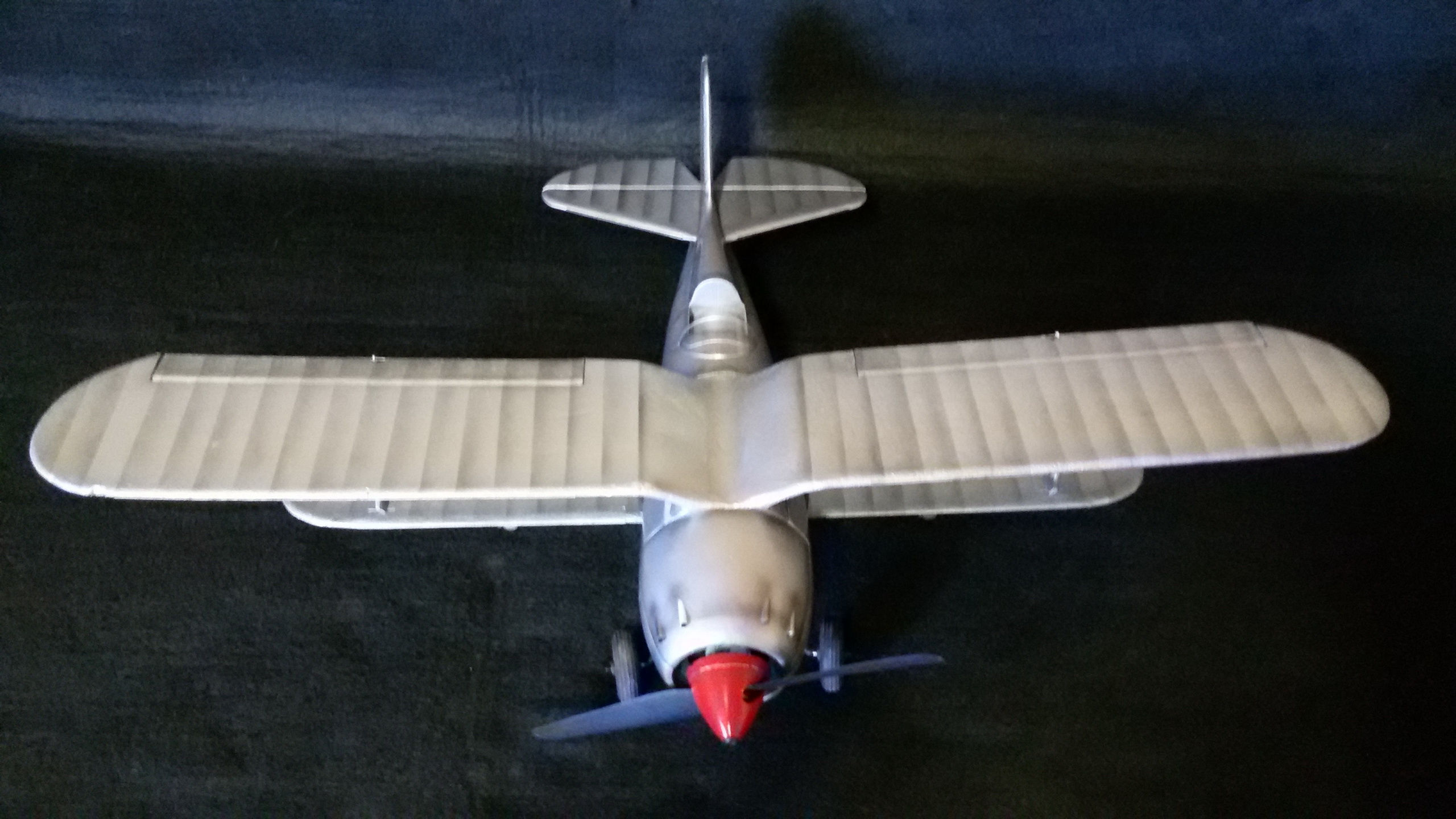 Интересная модель, но я бы не стал имитировать полотно на плоскостях, обшивка кроме рулей была фанерной.