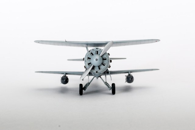Очень интересная модель. Необычная схема биплана без крыльевых стоек и система уборки шасси, своими щитками закрытия ниш. Покрашено здорово. А трубка Вентури вроде темного цвета была?