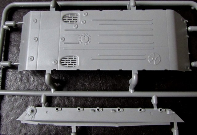 Есть плата фототравления (небывало для фирмы!). Травления минимум, ограждения фар и решетки на МТО. Вполне приличное на вид.