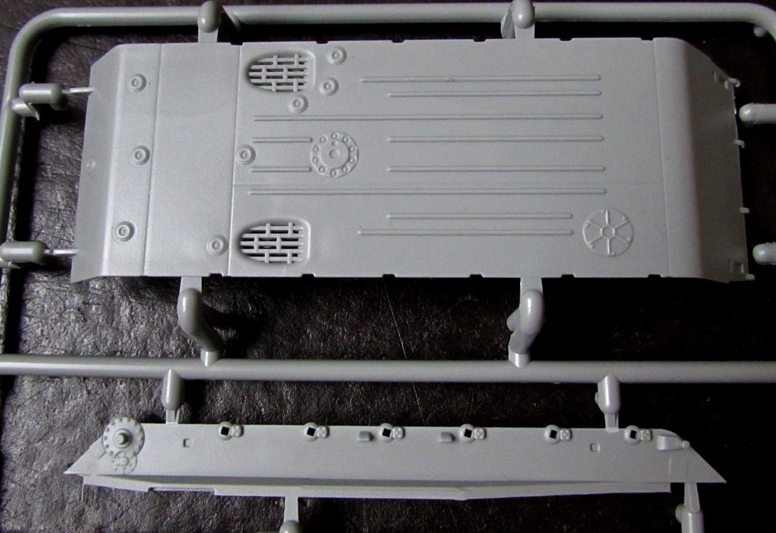 Гусеницы - худшая часть набора. Хоть они и даны двумя половинками, которые надо согнуть - но для сгиба их пластик не предназначен, при сгибании могут разломиться. Сами гусеницы имеют облой по бокам траков почти на всем их протяжении, и имеют очень большую толщину. Если хотите сделать не быстросбор, а более красивую и копийную вещь - купите Григорова.