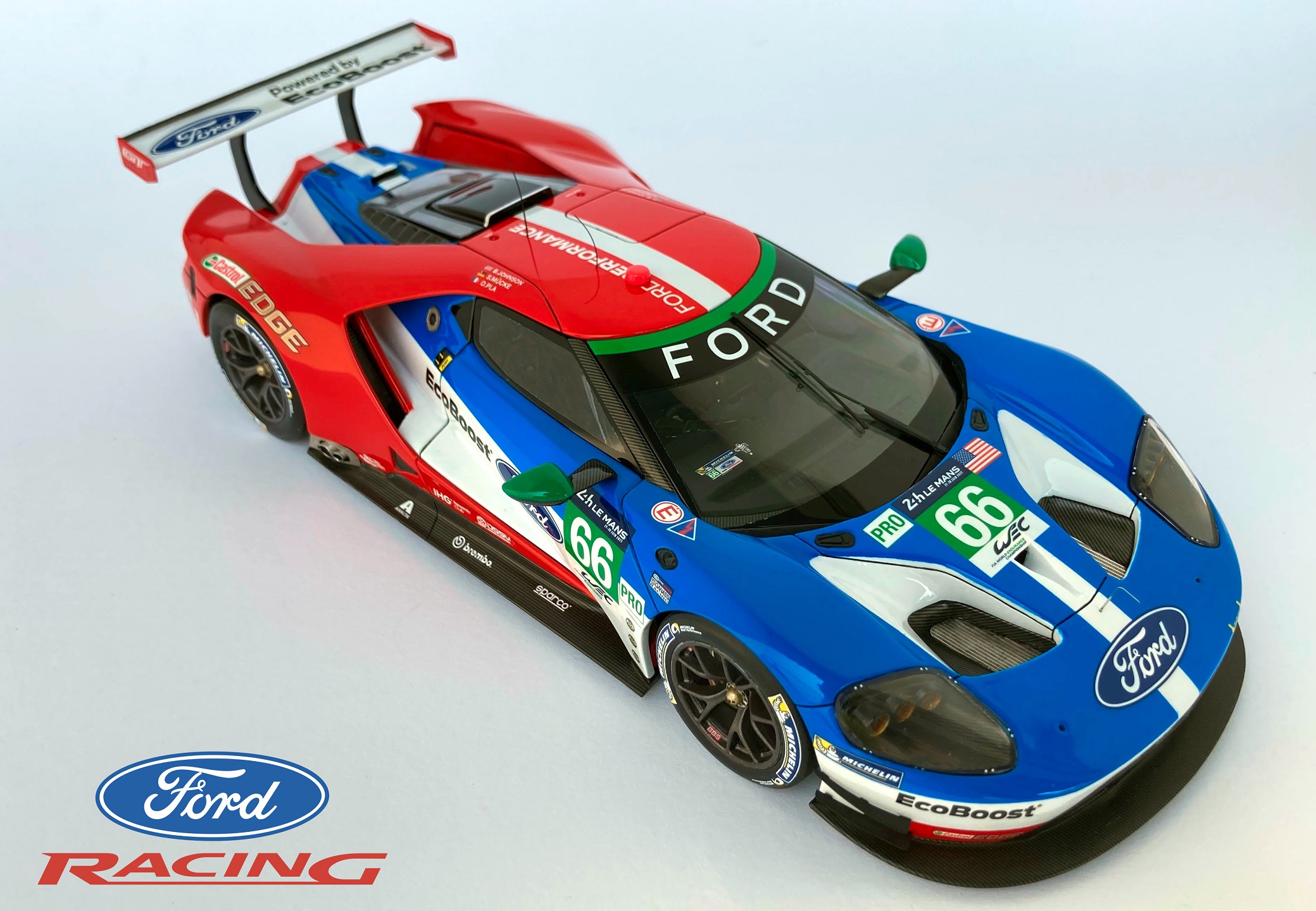 Уважаемые Коллеги, хочу представить Вам модель гоночного автомобиля Ford GT номер 66, участника знаменитой гонки 24 часа Ле-Ман в 2017 году под управлением пилотов B.Johnson, S.Mücke и O.Pla
