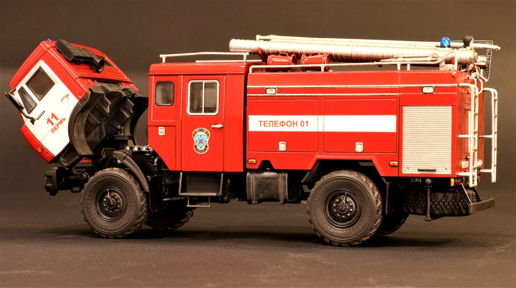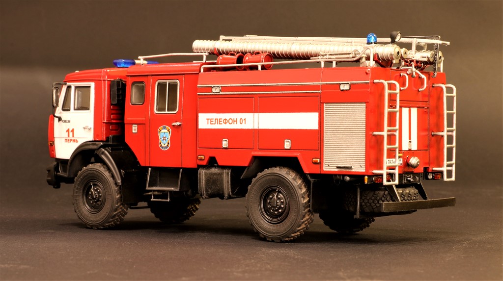 Доброго времени суток коллеги. Представляю вашему взору очередную работу. Необычный для меня масштаб 1:43 (до этой пожарки был опыт постройки ЗиЛ-130 от этого же производителя). Эта работа подарок-сюрприз на день рождения для одного хорошего человека, коллекционера моделей в 43-м масштабе, которая в скором времени полетит к нему и будет торжественно вручена. Сам масштаб подразумевает множество упрощений, но данный вариант наделён ажурностью пожарного оборудования, поэтому сборка была интересной. Конечно же, хотелось добавить пару моментов, но сжатые сроки постройки не позволили ждать заказ фототравления. Приятного просмотра.
