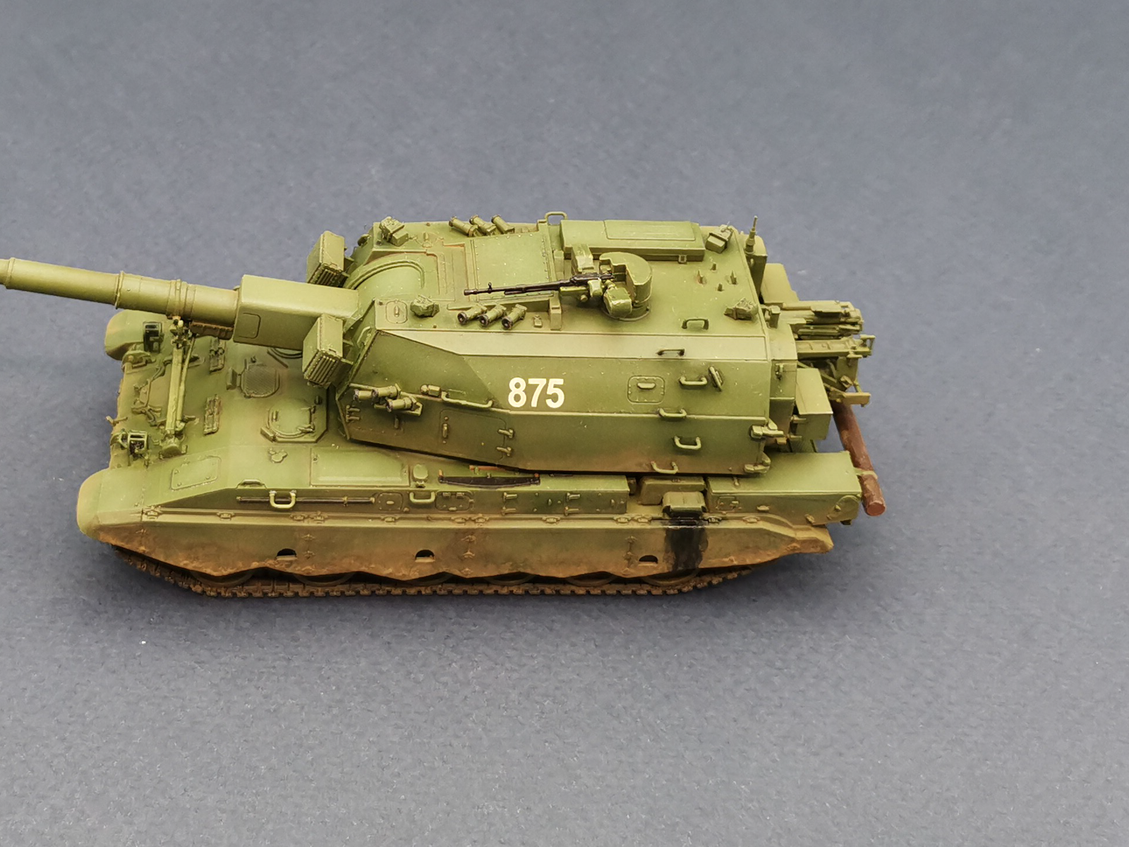Процесс сборки был несложен, стыковка на высоком уровне, за технической стороной вопроса не следил вообще. Красил грунтом АК + Field Green от MIG, не очень угадал с оттенком, но выглядит неплохо, как по мне. Пачкал пигментом Dartk Earth, сколы и потеки решил не делать.