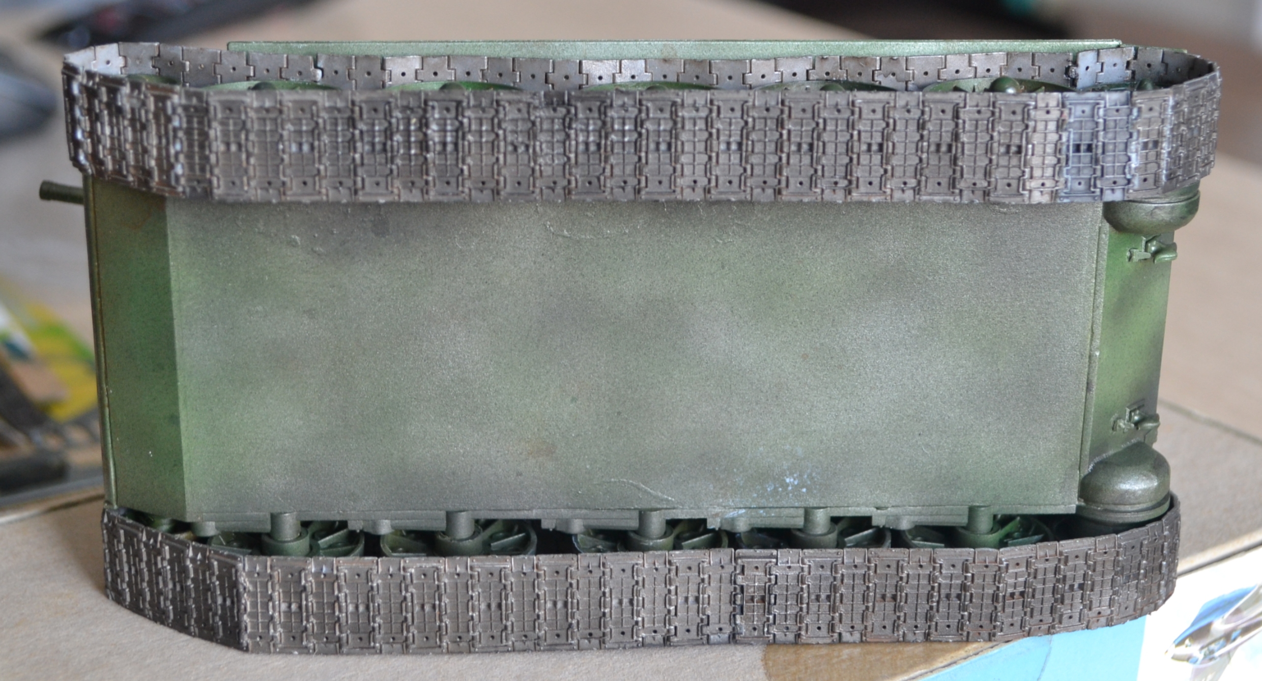 Вот так и взял поспешно этот кит "средней иконы", которым оказался не самый удачный ранний вариант Звезды с резиновыми гусеницами и избыточным обвесом.