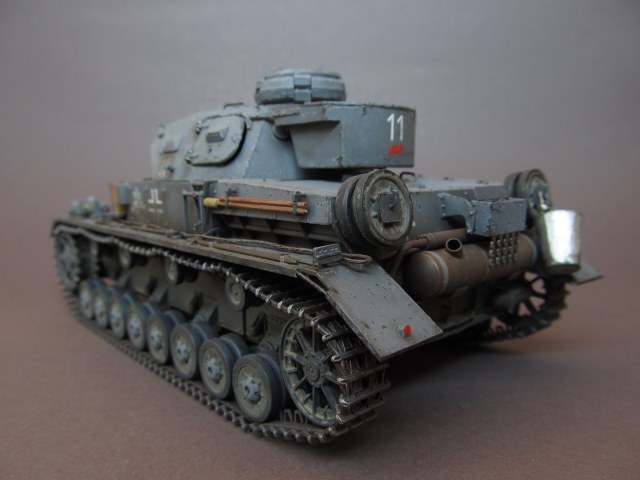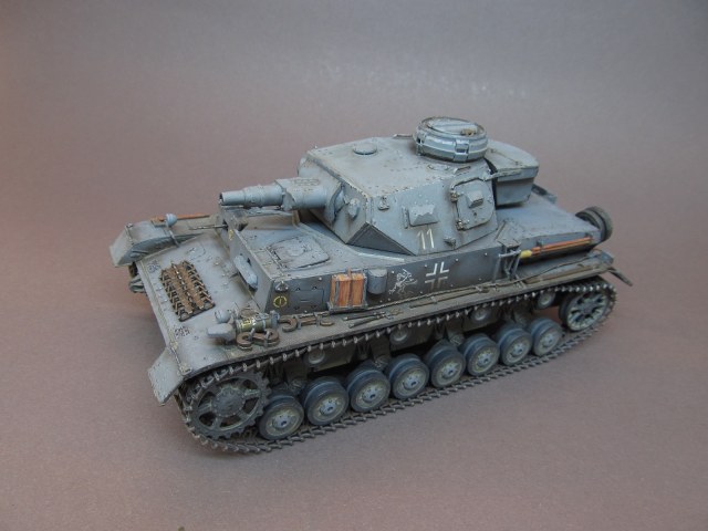 Сборка модели особых проблем не вызывает, стыкуемость деталей довольно неплохая, однако, шпатлевка при сборке понадобится однозначно, в первую очередь- для выравнивания утяжин на деталях. Решено было изобразить машину 11 танковой дивизии вермахта, а для этого нужно было оригинально расположить "обвес" танка; в данной дивизии "четверкам" был характерен следующий внешний вид: запасные катки располагались на корме танка (реже на крыше надмоторной плиты), на ВЛД крепилась секция дополнительных траков (а то и две сразу), на корме мог устанавливаться большой внештатный ящик для имущества экипажа. Собирал модель "из коробки", афтемаркет не использовал вовсе, но все же для большей копийности от себя доделал некоторые моменты, а именно: