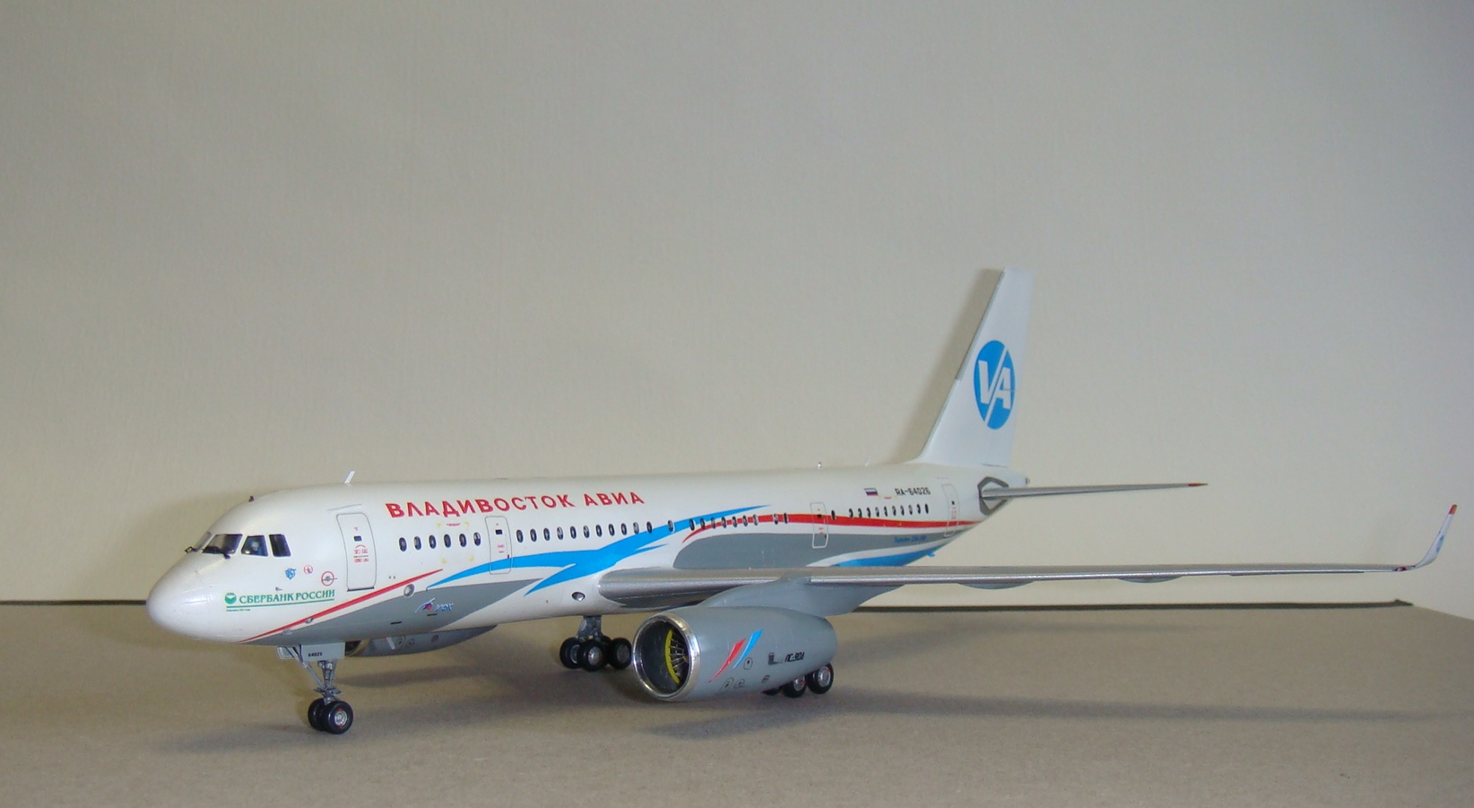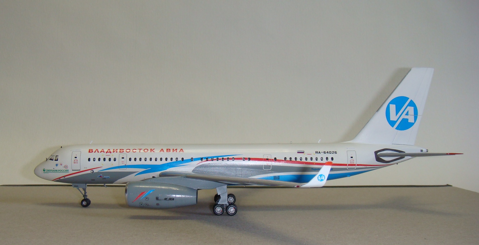 Доброго времени суток, коллеги. Представляю вашему вниманию самолет Ту-204-300 от Звезды в 1/144. Ничего нового я не делал, все по стандарту, Взял базовый набор Ту-204-100 от Звезды, вырезал два сегмента из фюзеляжа и получил короткую 300-тую версию Ту-204-300. Те коллеги, кто делал этот вариант, меня поймут. Из дополнительного, сделано БАНО, проблесковые маяки, лопатки ВНА и 1 ступень ОК , антенны, проводка на стойках основных шасси, дворники. Сделал в стояночном положении элероны и рули высоты, вставил фары под штатное стекло в фюзеляж и на крылья. Использовал декаль от Ascensio. Красил тамией матовый акрил, глянцевай лак. Выделять расшивку не стал, ее и так видно. Спираль на коки двигателя взял из набора Ту-204-100 от Звезды, ред вингс , спираль сделана с ошибками: закрутка у производителя отрисована на декали в противоположную сторону. Это не верно. Заметил этот косяк только, когда нанес на коки. Удалять не стал, т.к. в глаза не бросается, особенно для тех, кто не особо в этом разбирается. Думаю, что это не критично. Модель в сборке понравилась, приятно было строить, шпатлевки использовал совсем чуть чуть. С серым цветом тоже не угадал. Что получилось, то и получилось. В целом результатом я доволен на 70%.